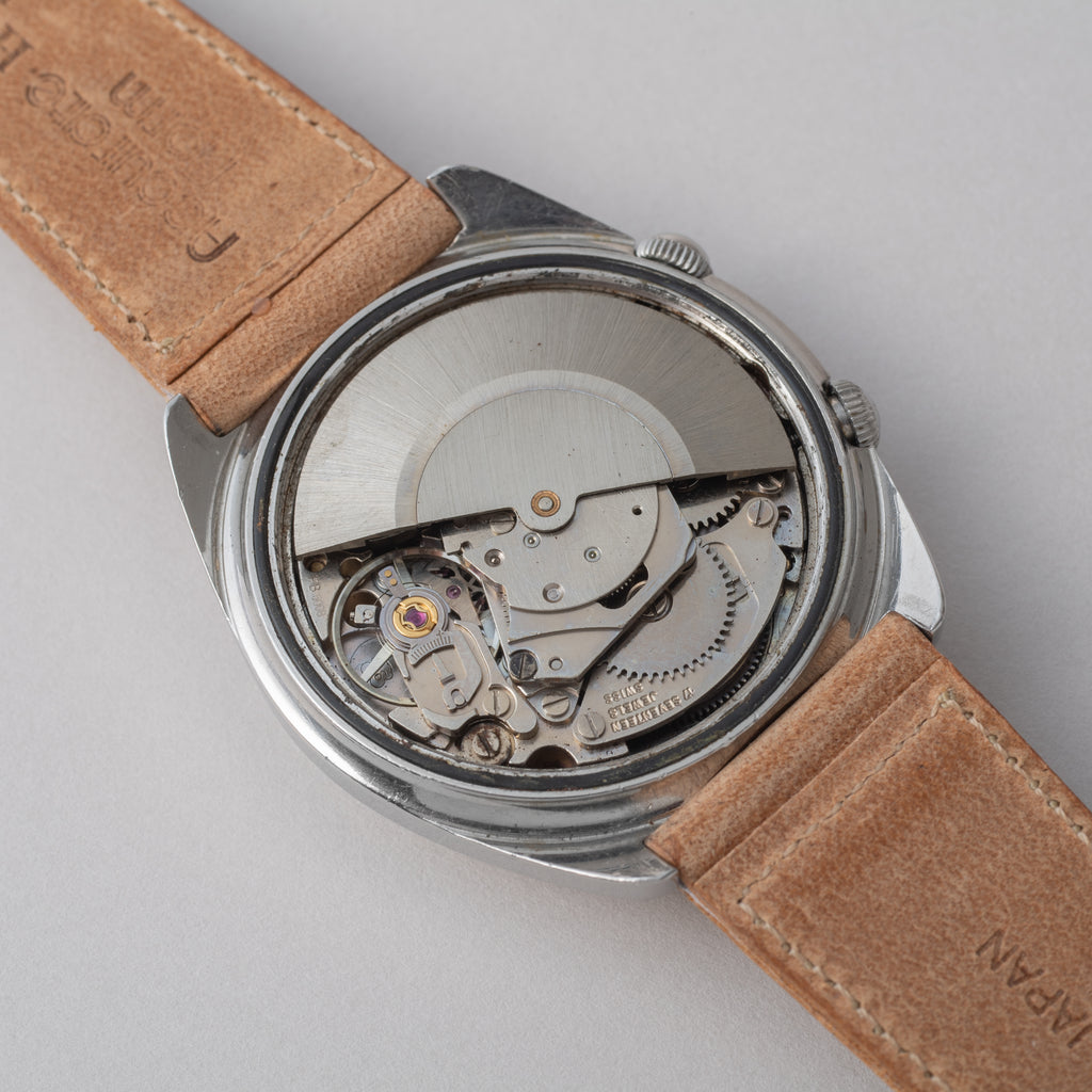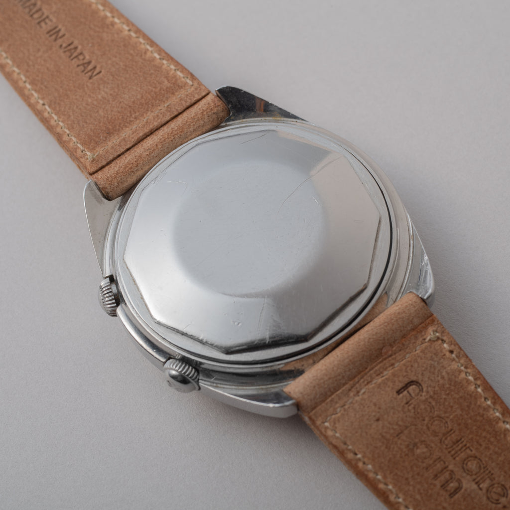 • ヴィンテージ時計の特性上、風防・パッキン・リューズ・バネ棒などの消耗部品は後年メンテナンス過程で交換されている場合がございます。オリジナル性を重視しておりますが、必要に応じて適切な部品にて調整されていますので、よりコレクション性重視のお求めのお客様は事前にご確認ください。