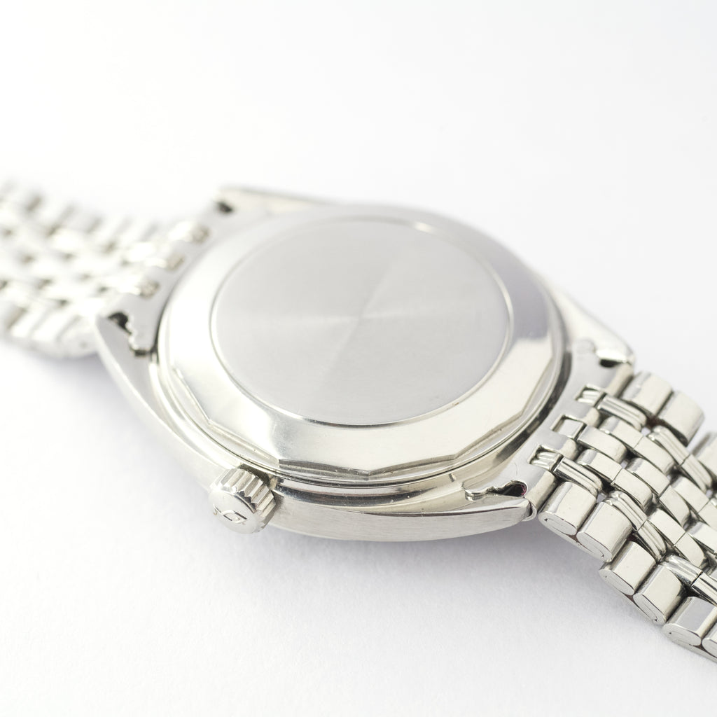 • ヴィンテージ時計の特性上、風防・パッキン・リューズ・バネ棒などの消耗部品は後年メンテナンス過程で交換されている場合がございます。オリジナル性を重視しておりますが、必要に応じて適切な部品にて調整されていますので、よりコレクション性重視のお求めのお客様は事前にご確認ください。