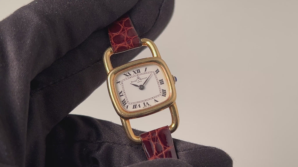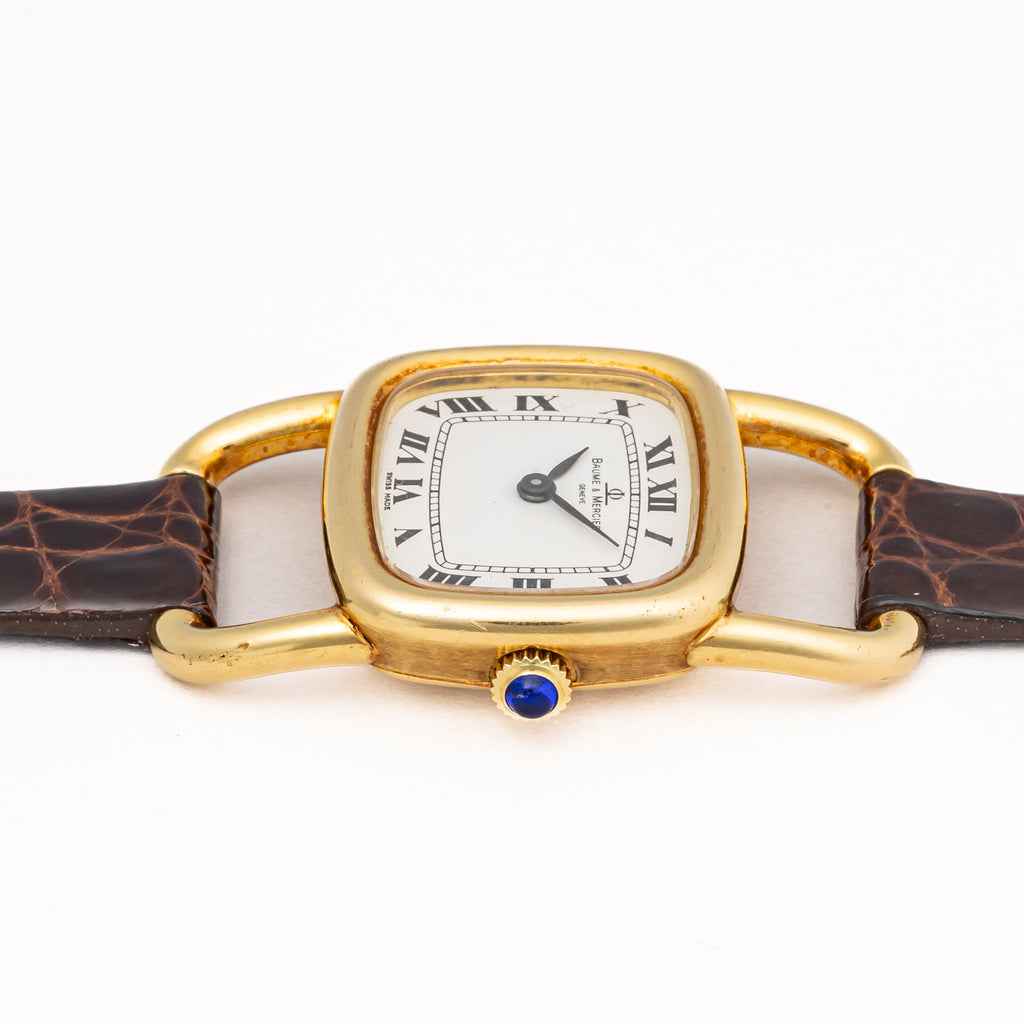 ボーム&メルシエ 1970年代製 18金無垢イエローゴールド エトリエデザイン 手巻き ホワイトローマンダイヤル
