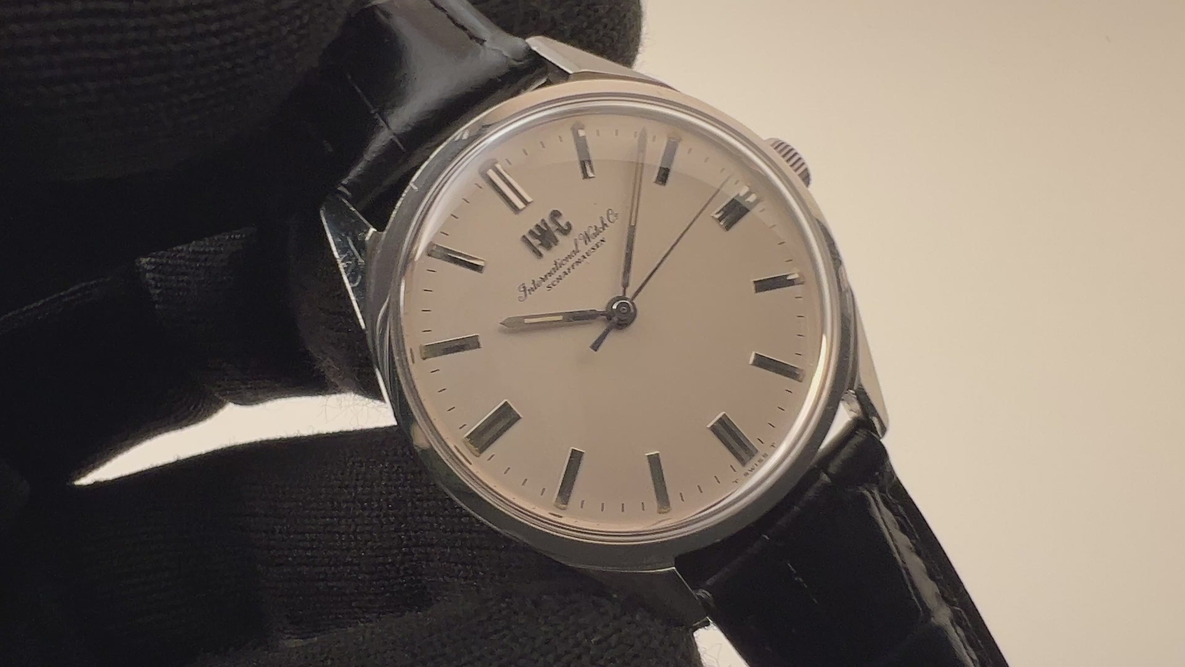 IWC ラウンド 1970年製(昭和45年製) Cal.89 手巻き オールドインター R810 の入荷になります。搭載キャリバーはマークⅪ等の採用でも有名な手巻の名機Cal.89。ケースはシンプルなラウンド型で、ラグは70年代のカーデザインを彷彿とさせる直線デザインです。サイズは35mmとカジュアル・ビジネスで使いやすいサイズ。ケースは小傷が見られますが大きなダメージはありません。ベルトは社外のクロコダイル革ベルトが取り付けられています。