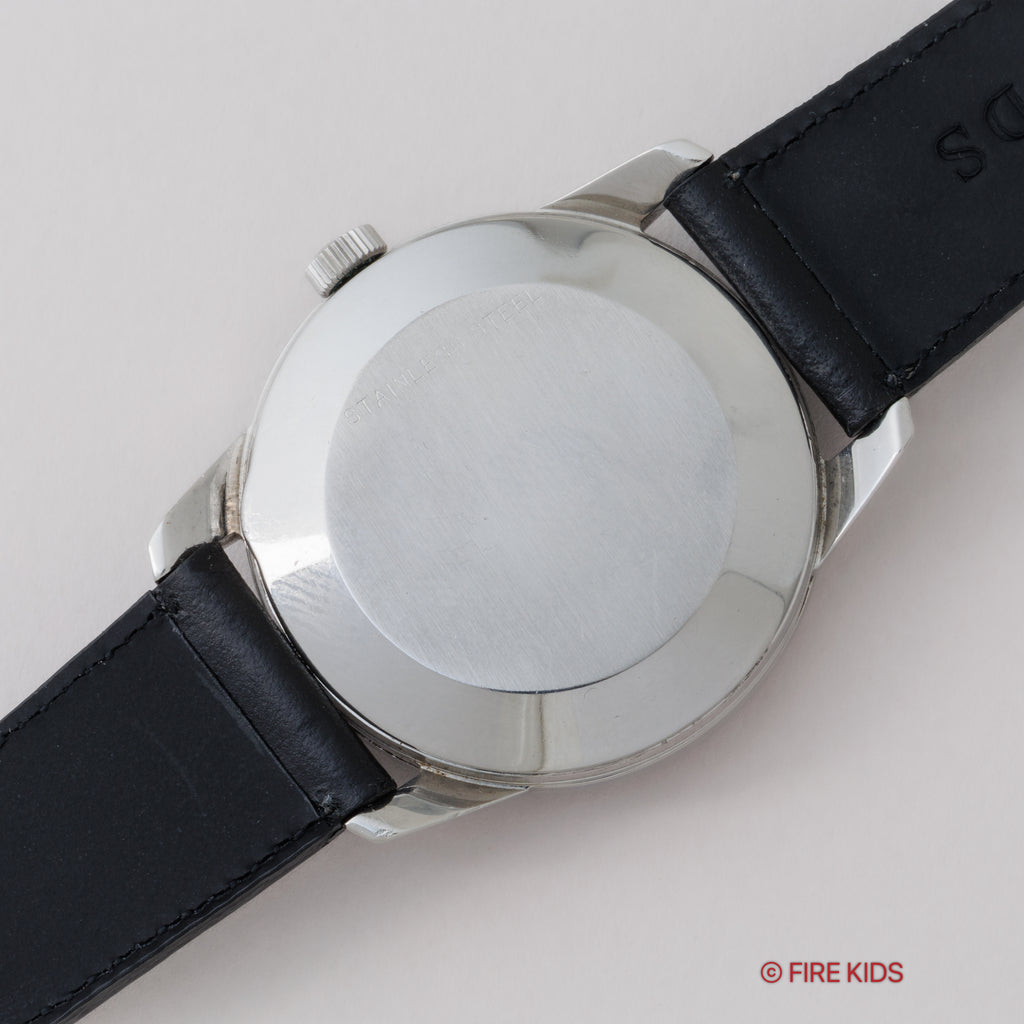• ヴィンテージ時計の特性上、風防・パッキン・リューズ・バネ棒などの消耗部品は後年メンテナンス過程で交換されている場合がございます。オリジナル性を重視しておりますが、必要に応じて適切な部品にて調整されていますので、よりコレクション性重視のお求めのお客様は事前にご確認ください。