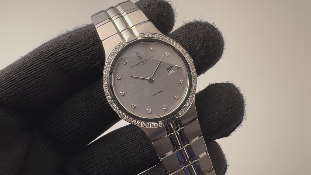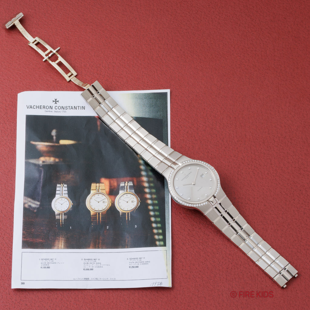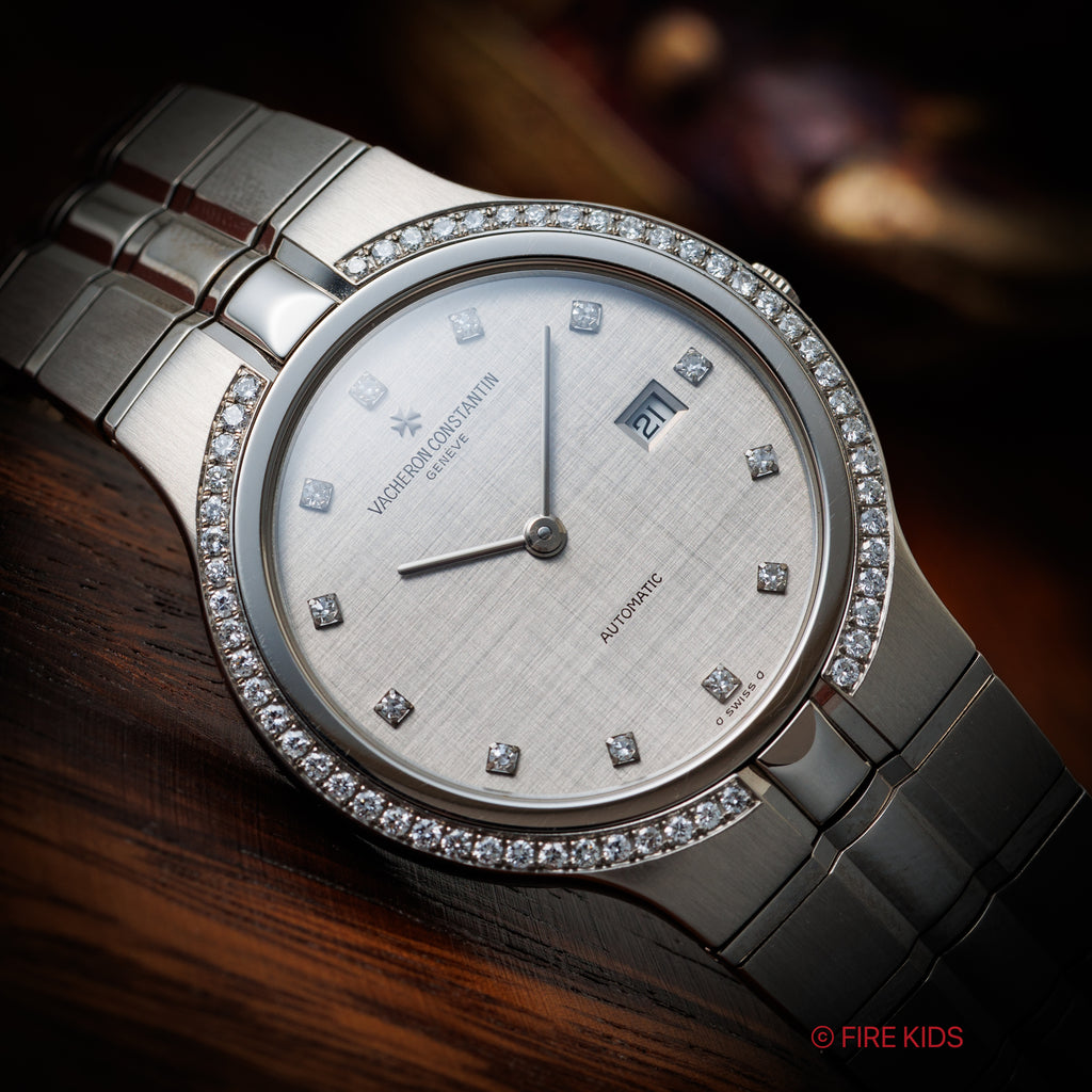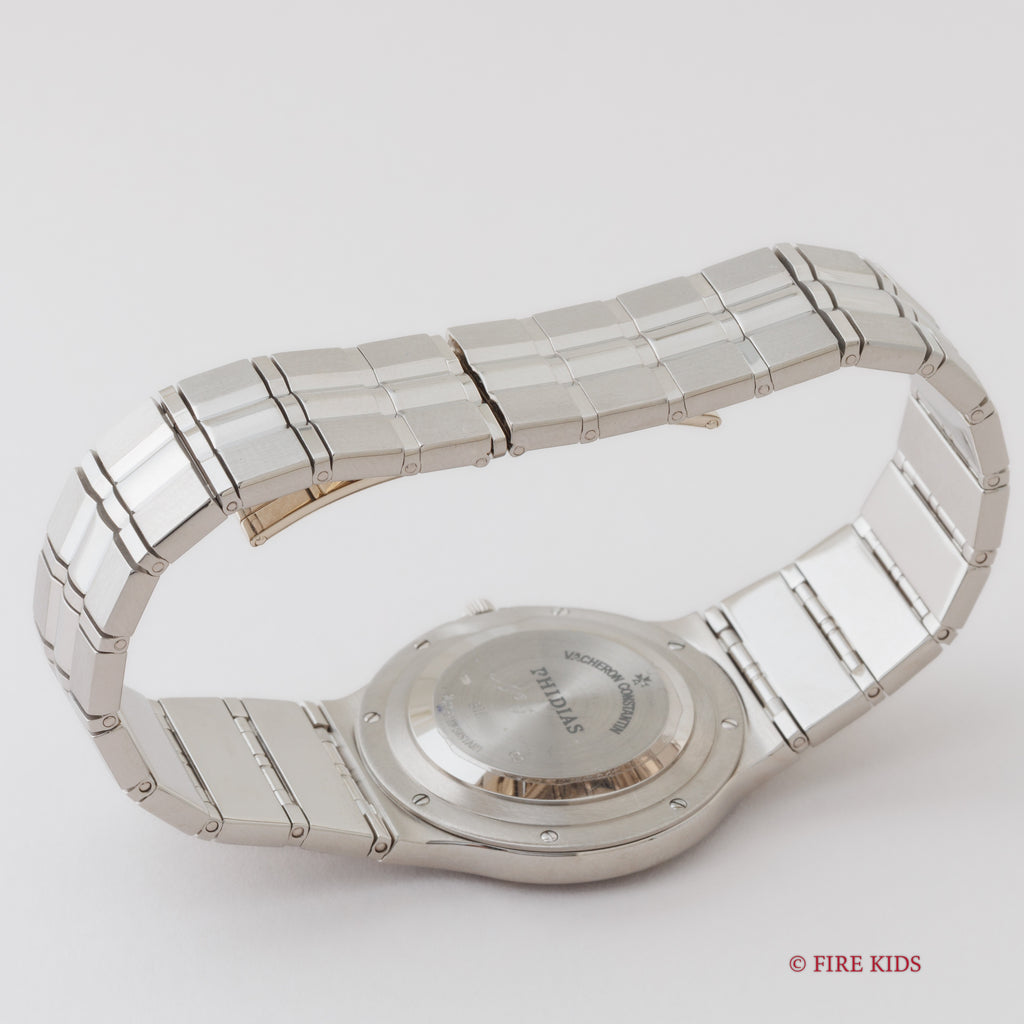ヴァシュロン・コンスタンタン フィディアス 1990年代製 Ref.48510 K18WGベゼルダイヤ 自動巻 の入荷になります。オーバーシーズをデザインしたディノ・モドロ(Dino Modolo)氏のデザインでスポーティかつエレガントなモデルになっています。モデル名のフィディアスはパルテノン神殿を再建する際の彫刻家フィディアスから取られたモデル名です。12Pダイヤ文字盤にベゼルダイヤと気品が感じられる1本になっています。使用感の無い綺麗な状態で抜群のコンディションです。こちらは分解掃除済みです。