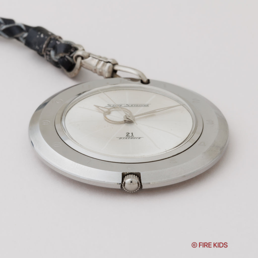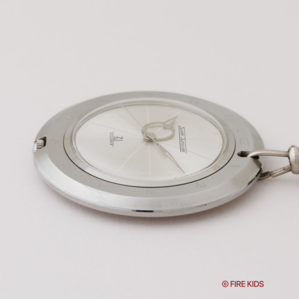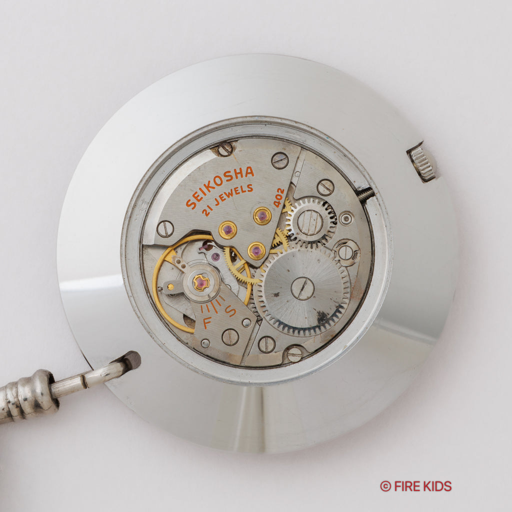 1960年代に製造されたセイコースカイライナー 懐中時計です。こちらのスカイライナーはCal.402を搭載した手巻きの懐中時計です。針は変わり針、ベゼルにアラビア数字と珍しいデザインです。文字盤は経年劣化がありますが、ケースは小傷がありますが比較的綺麗です、手巻きや針回しの操作はスムーズです。こちらは箱が付属しています。