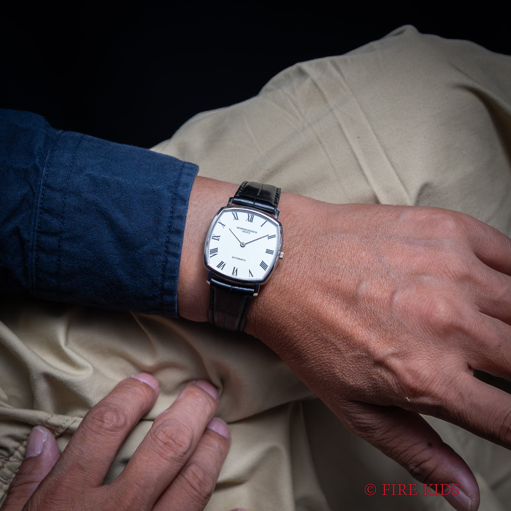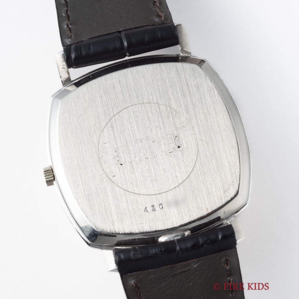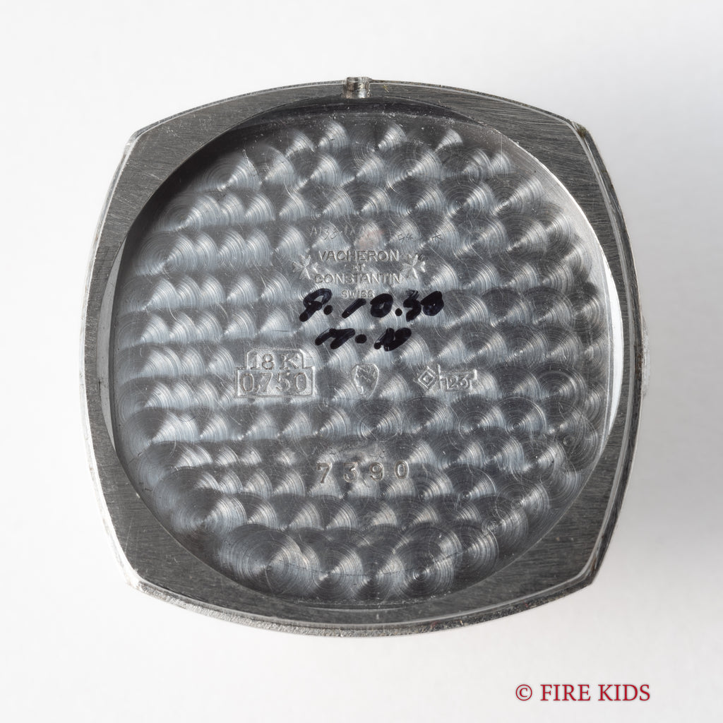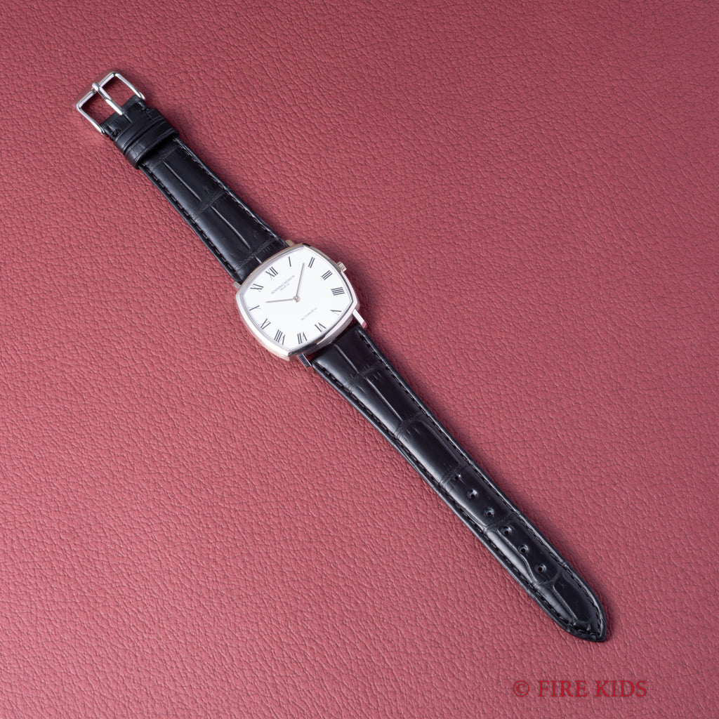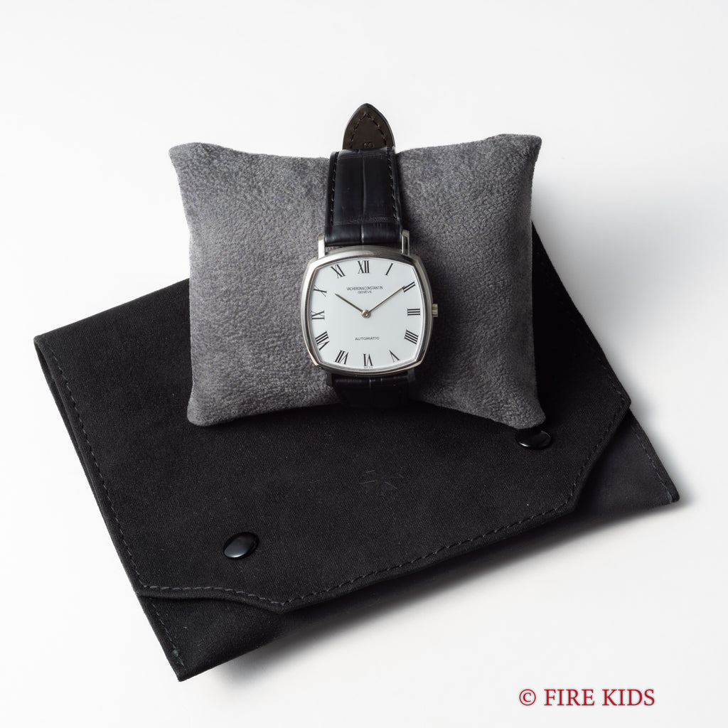 1970年代に製造されたヴァシュロン・コンスタンタン スクエアケース 手巻きモデルです。18KWGのスクエアケースに2針、ローマインデックスとシンプルです。文字盤はダメージも少なく、概ね綺麗な状態です。ケースは小傷がありますが、大きなダメージはありません。ムーブメントはジャガールクルトベースのCal.K1120を搭載、コンディションは良いですが、ローターの音がケースの中で反響して大きく聞こえてしまいます。ベルトはファイアーキッズオリジナルのクロコダイル革ベルトが取り付けられています。こちらはサービスケース付です。