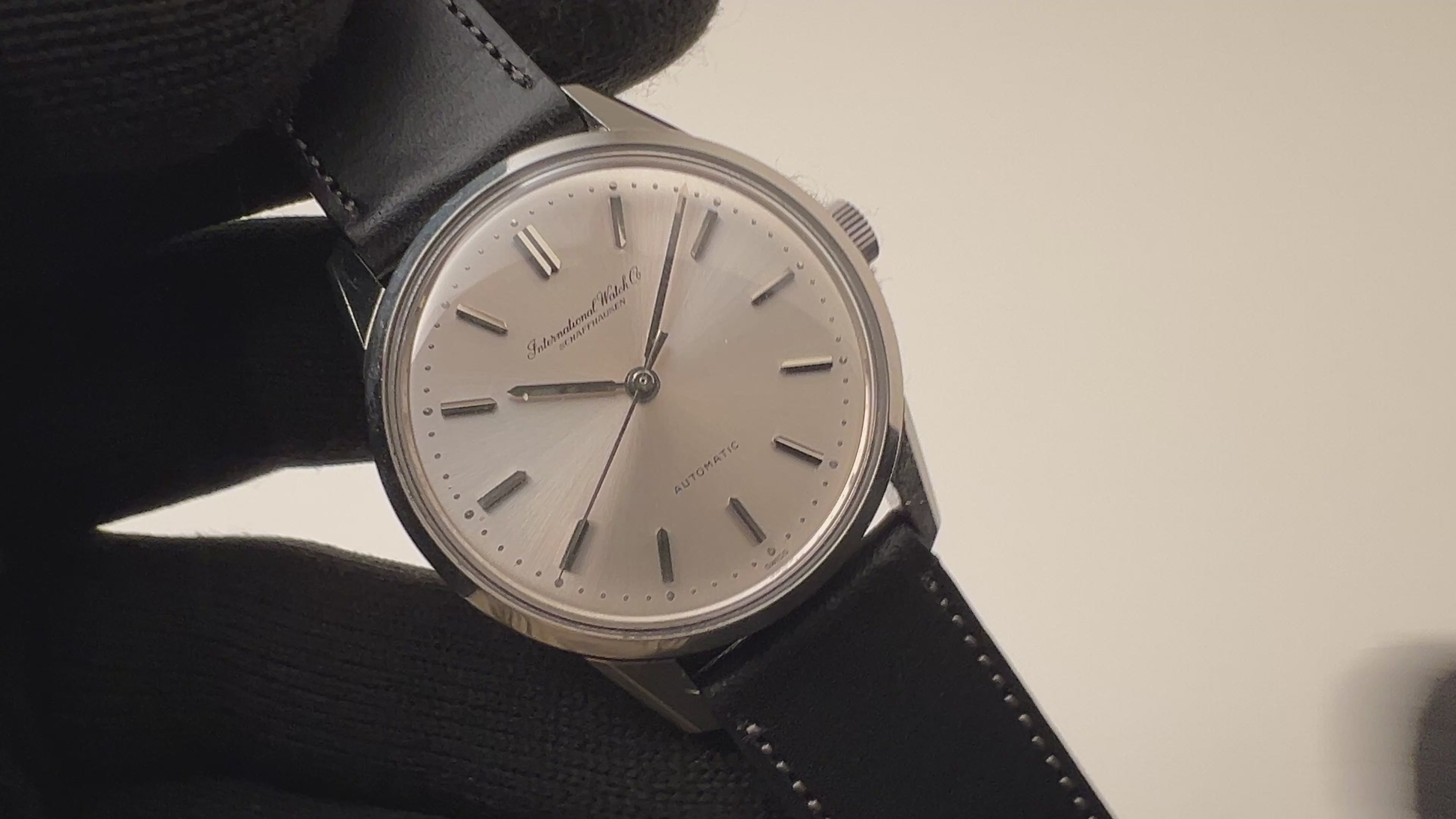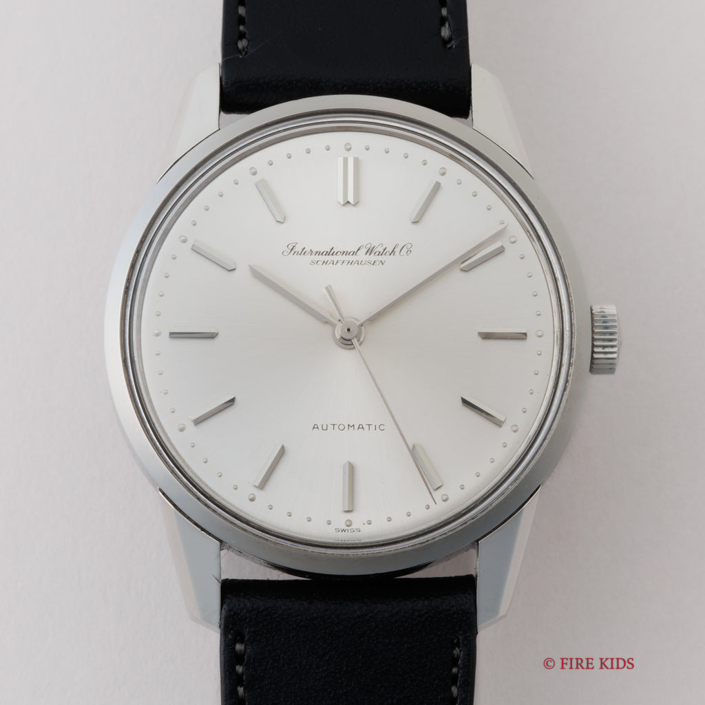 インターナショナルウオッチカンパニーの1967年製自動巻きラウンドケースです。IWCとインターナショナルウォッチカンパニーの書き込みの両方表記されている人気モデルです。ペラトン式自動巻きの完成形Cal.8541を搭載したモデルでオールドインターらしいシンプルですな質実剛健なモデルです。 シンプルだからこそ造りの良さが感じられます。ベルトはファイアーキッズオリジナルのブッテーロレザーベルトを合わせています。