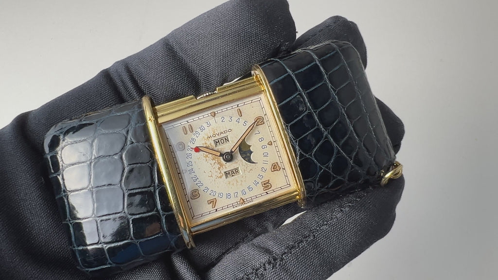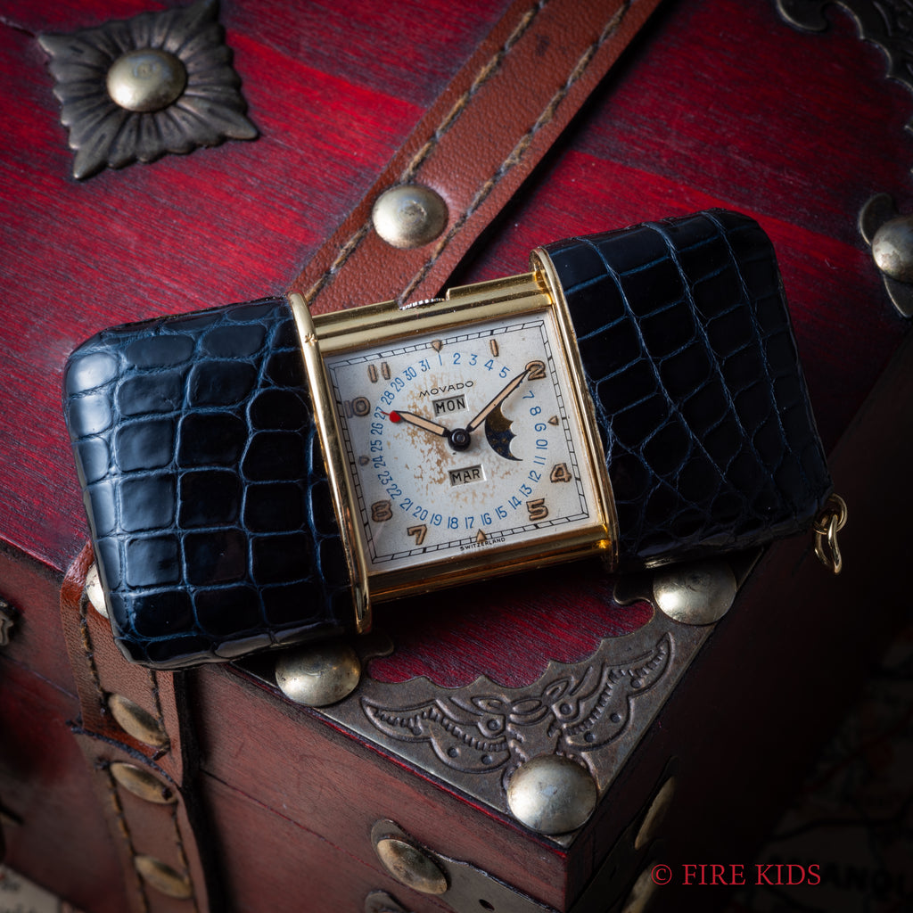 モバード カレンドエルメト トリプルカレンダームーンフェイズ 革巻き トラベルウォッチ 半自動手巻き 1940年代製