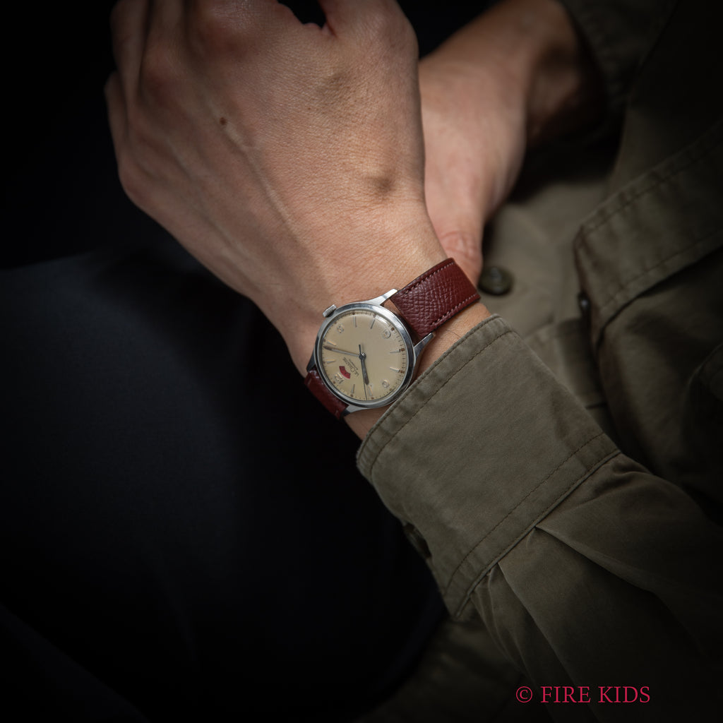 • ヴィンテージ時計の特性上、風防・パッキン・リューズ・バネ棒などの消耗部品は後年メンテナンス過程で交換されている場合がございます。オリジナル性を重視しておりますが、必要に応じて適切な部品にて調整されていますので、よりコレクション性重視のお求めのお客様は事前にご確認ください。