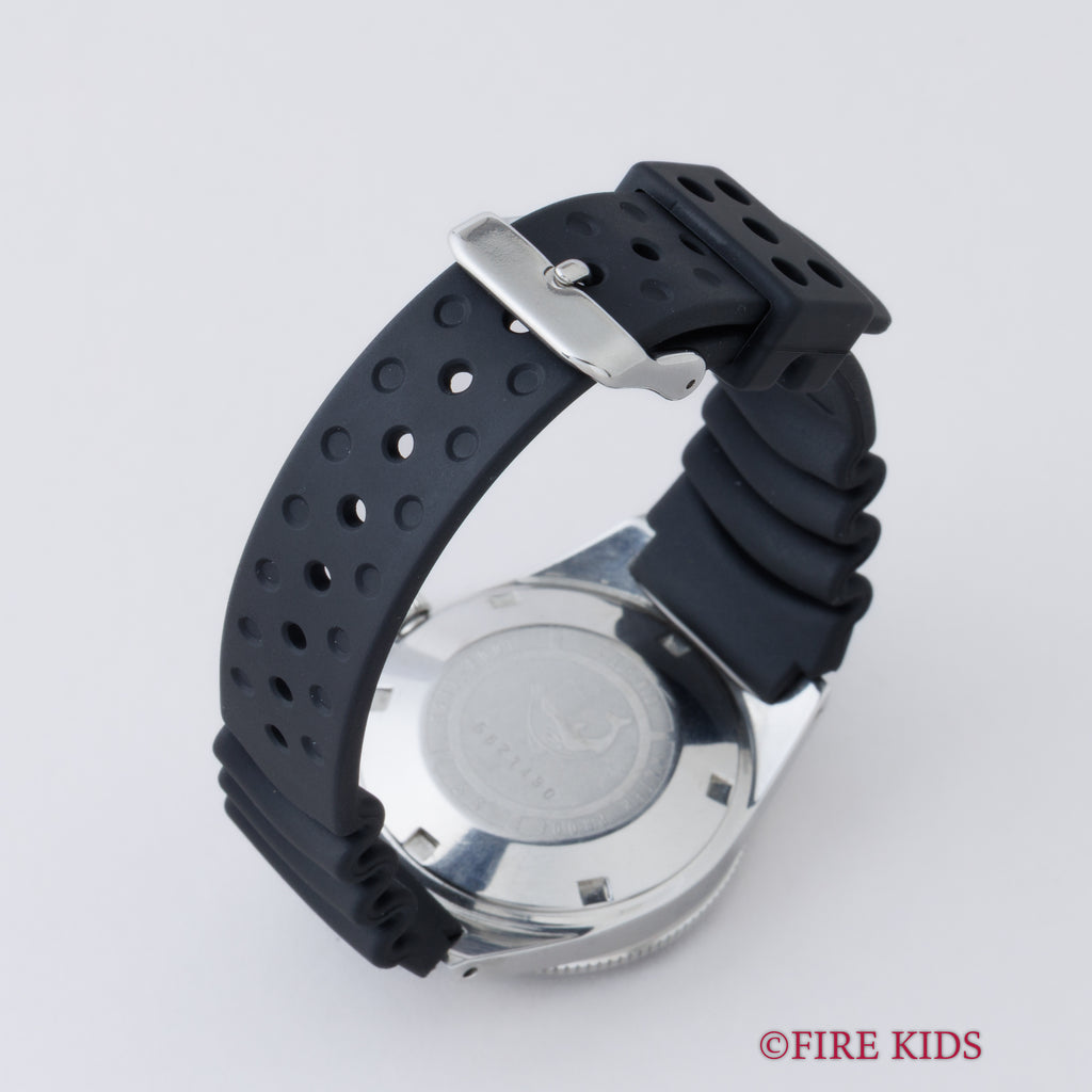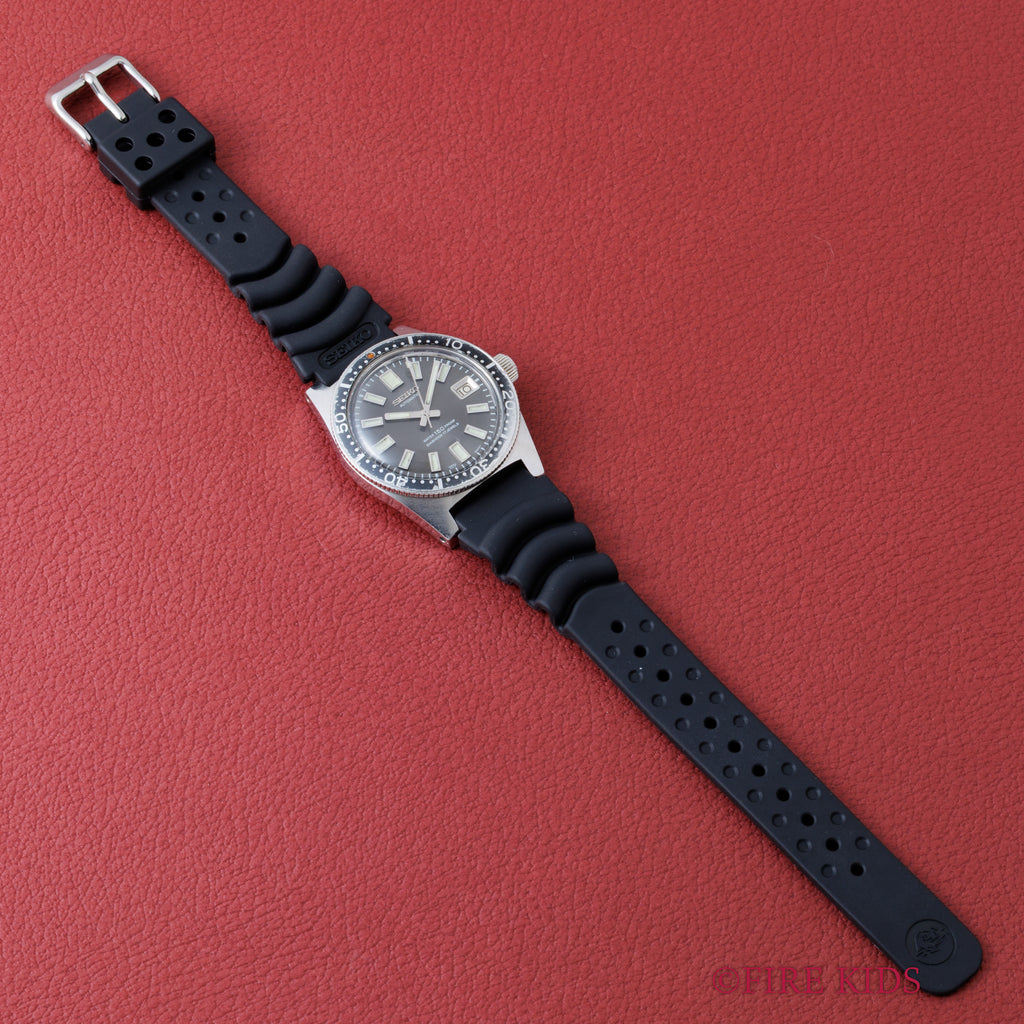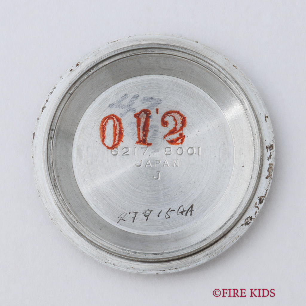 セイコー 150mダイバーファーストモデル後期型 寅さんモデル 1966年製 Ref.6217-8001 自動巻 62MASの入荷になります。国産初のダイバーズウオッチ150mダイバーファーストモデルの後期型で映画「男はつらいよ」シリーズで使用されていたモデルです。ムーブメントは自動巻きのCal.6217Aを搭載。カレンダーの早送り機能付きで手巻きはできないタイプです。 ケースは小傷がありますが大きなダメージはありません。 裏蓋にはイルカマークもしっかり残っています。 針回し、ベゼルの操作はスムースです。 ベルトは純正のラバーベルトが取り付けられています。