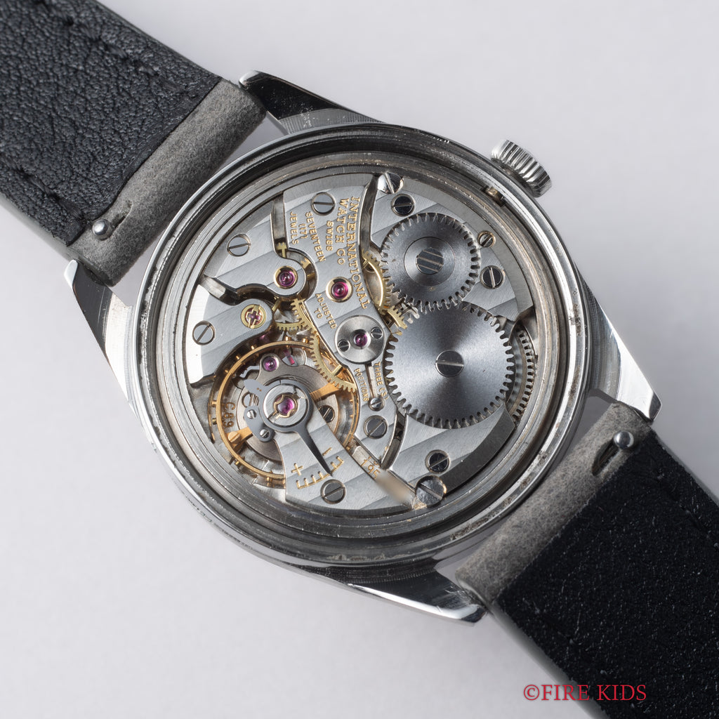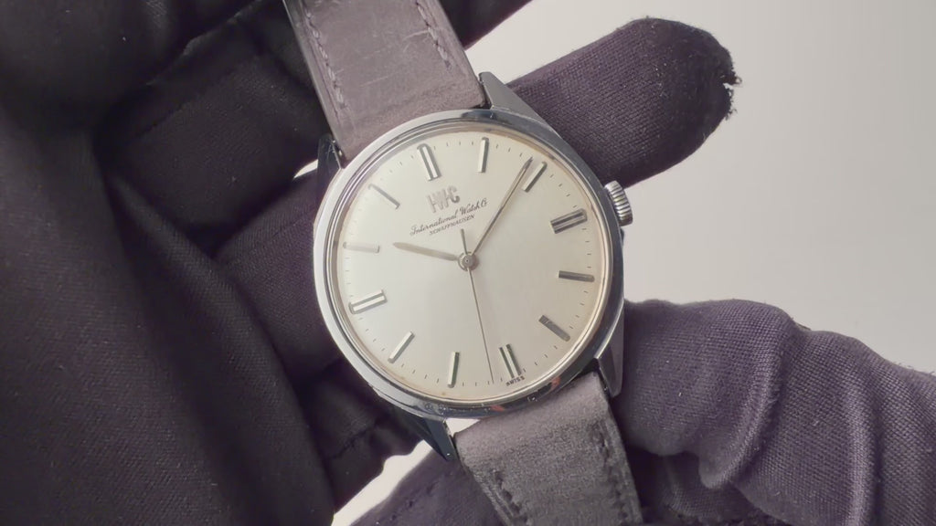 IWC ラウンドケース 1970年製(昭和45年製) Cal.89 手巻 オールドインター R810 お魚リューズの入荷になります。搭載キャリバーはイギリス軍用時計のマークⅪ等の採用でも有名な手巻の名機Cal.89。ケースはシンプルなラウンド型で、ラグは70年代のカーデザインを彷彿とさせる直線デザインです。サイズは35mmとカジュアル・ビジネスで使いやすいサイズ。ケースは小傷が見られますが大きなダメージはありません。ベルトは社外の革ベルトが取り付けられています。こちらの時計は分解掃除済みです。