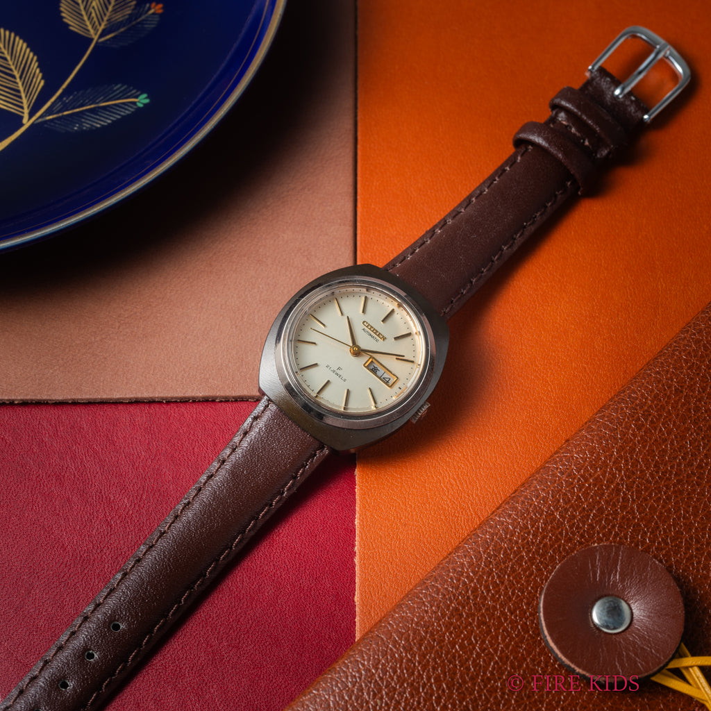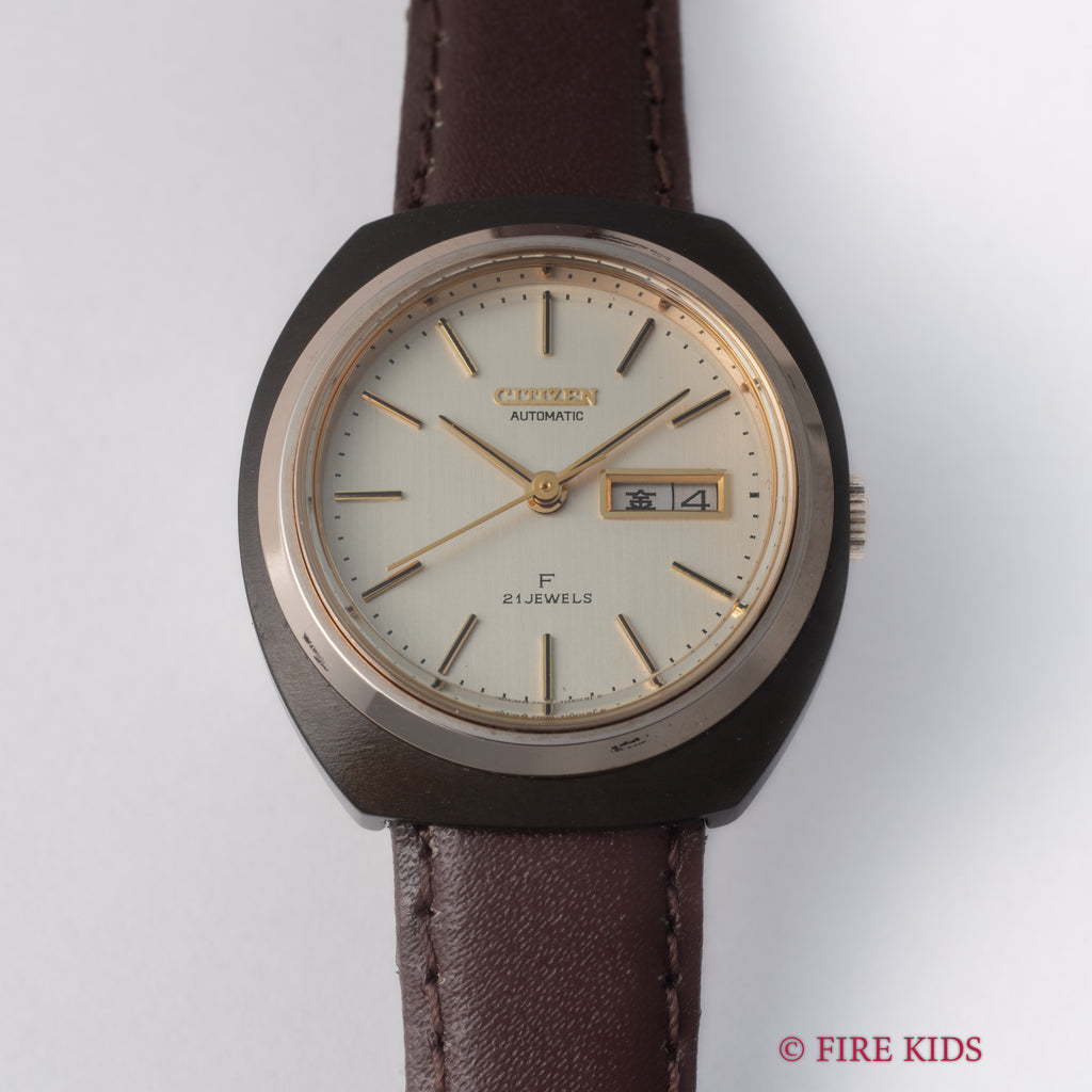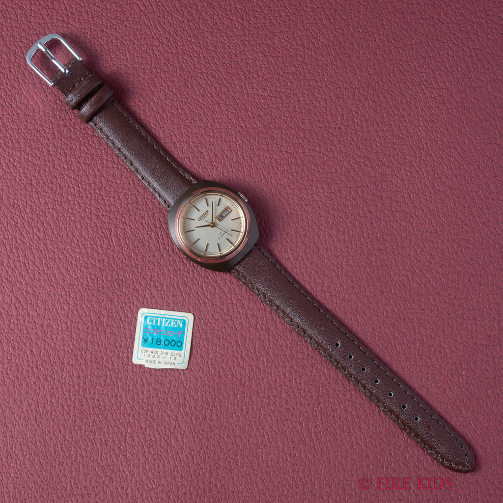 シチズン コスモスター ブラッキーケース 自動巻き 1976年製 レディースです。チズンが誇るブラッキーケースも良好なコンディションで個性的です。全体的に使用感が無く非常に綺麗な状態です。ベルトは社外の革ベルトが取り付けられています。