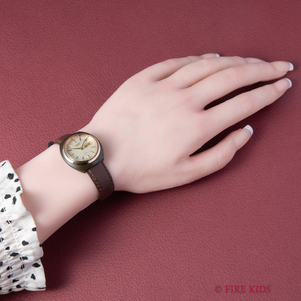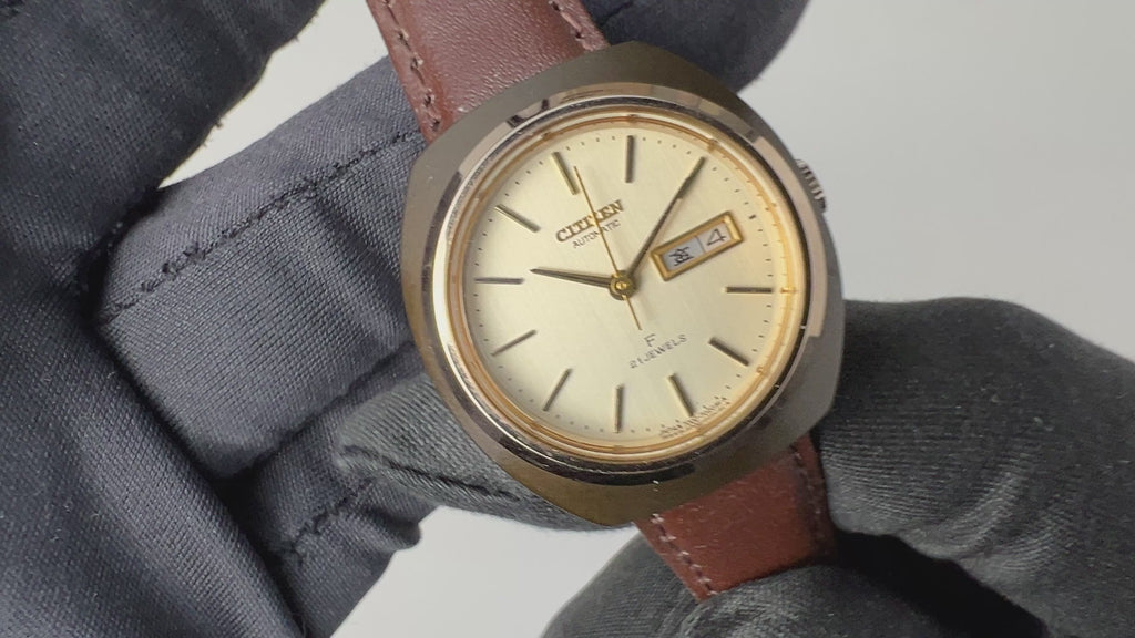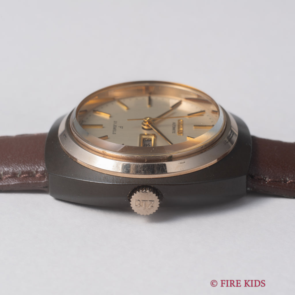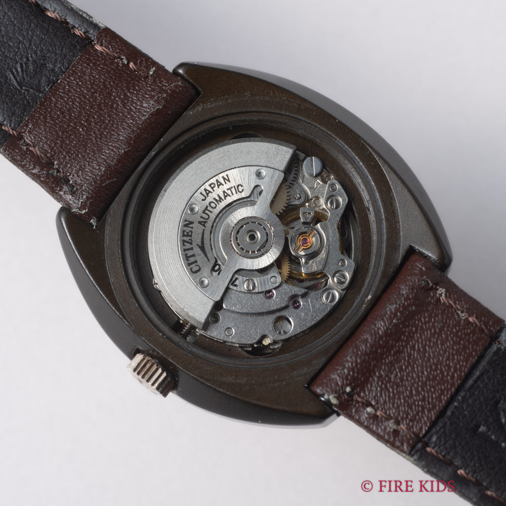 シチズン コスモスター ブラッキーケース 自動巻き 1976年製 レディースです。チズンが誇るブラッキーケースも良好なコンディションで個性的です。全体的に使用感が無く非常に綺麗な状態です。ベルトは社外の革ベルトが取り付けられています。