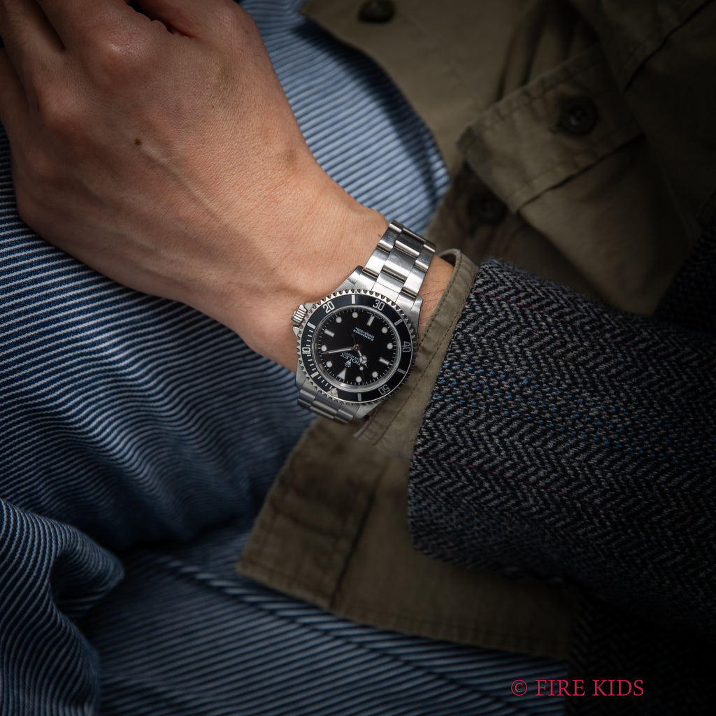 ロレックス サブマリーナー Ref.14060M 2002年製 ノンデイト 箱 国際サービス保証書付きの入荷になります。人気のサブマリーナー定番の黒ベゼル&ステンレス製の組み合わせです。ノンデイトの文字盤は日付を合わせる必要がなく使いやすいモデルになります。ムーブメントはハイビートのCal.3130を搭載。手巻きや針回し、ねじ込みリューズの操作はスムースです。ベルトは純正ステンレス93150/501Bが取り付けてあります。