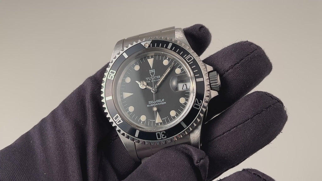 チューダー サブマリーナー 1992年製 Ref.79090 王冠リューズ オリジナルブレスの入荷になります。王冠リューズが付き、90年代ながらフチなし夜光に巻きのダブルロックブレスの組合せは70年代を思わせるヴィンテージな表情でロレックスRef.1680の雰囲気です。ダイヤルは針夜光の経年はあるもののオリジナルで、ケースは小傷、打痕は多少ありますが致命的なダメージはありません。ブレスは製造年代の近い純正サブマリーナー用巻ブレスが取り付けられています。ムーブメントは信頼性の高い自動巻きETA2824-2を搭載し、手巻きや針回し、リューズのねじ込みの操作はスムースです。