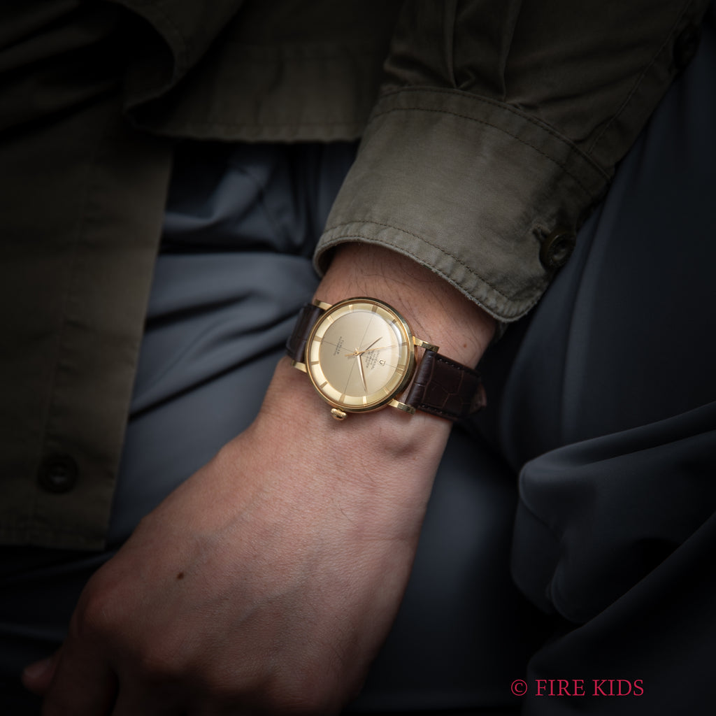 • ヴィンテージ時計の特性上、風防・パッキン・リューズ・バネ棒などの消耗部品は後年メンテナンス過程で交換されている場合がございます。オリジナル性を重視しておりますが、必要に応じて適切な部品にて調整されていますので、よりコレクション性重視のお求めのお客様は事前にご確認ください。