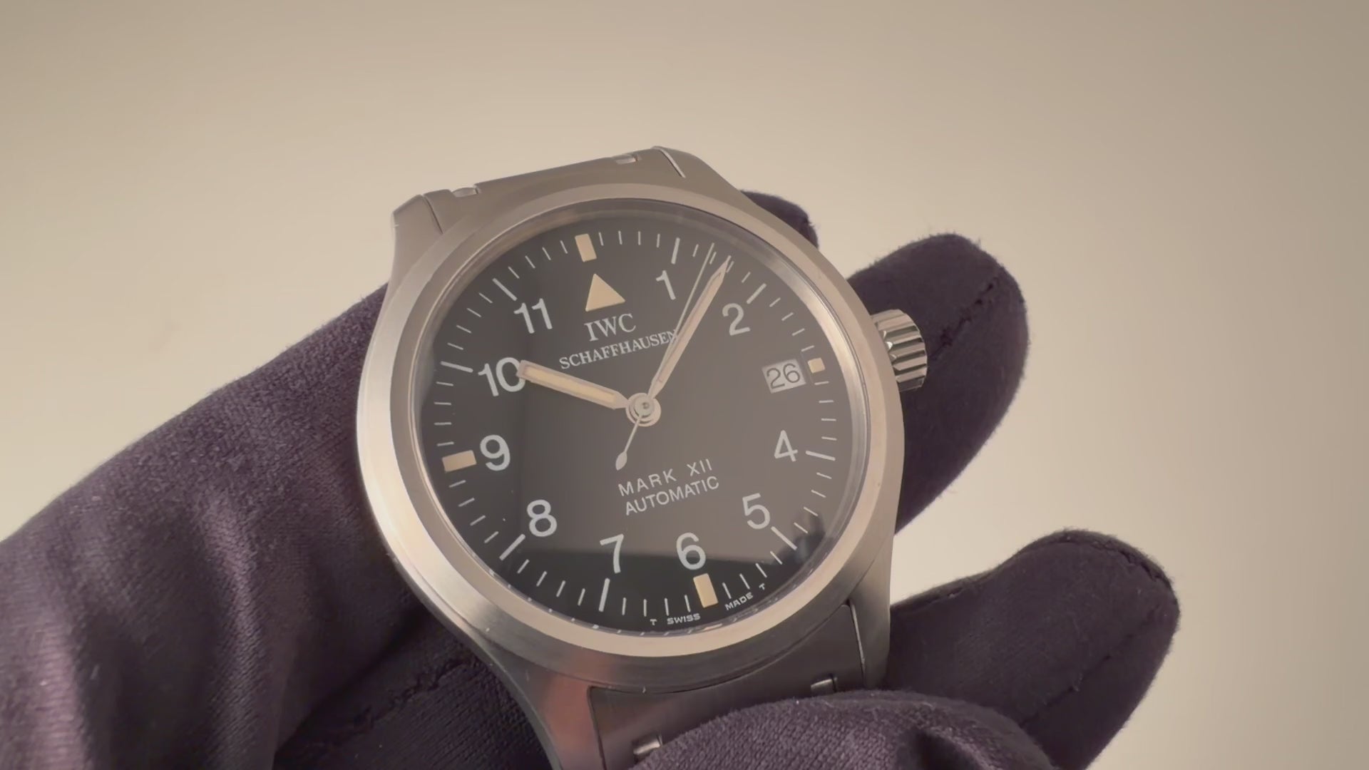 IWC マーク12 1999年製 Cal.884/2 Ref.3241 自動巻き 純正ブレス ギャランティカード付です。イギリス軍のパイロットウオッチとして採用されたMK11の復刻モデルとして発売されたMK XⅡはジャガールクルトベースの自動巻きムーブメントCal.884 / 2を搭載して36mmサイズという使いやすいサイズ感が魅力的な時計です。ケースは若干の仕上げは感じますが、気になるダメージはありません。希少性の高い純正オリジナルステンレスブレス付きというのもポイントが高いです。メーカーギャランティカード付になります。こちらは分解掃除済みです。