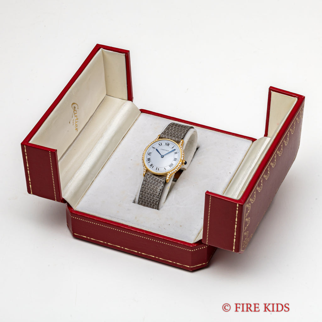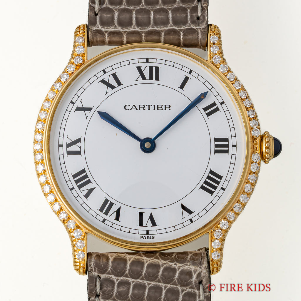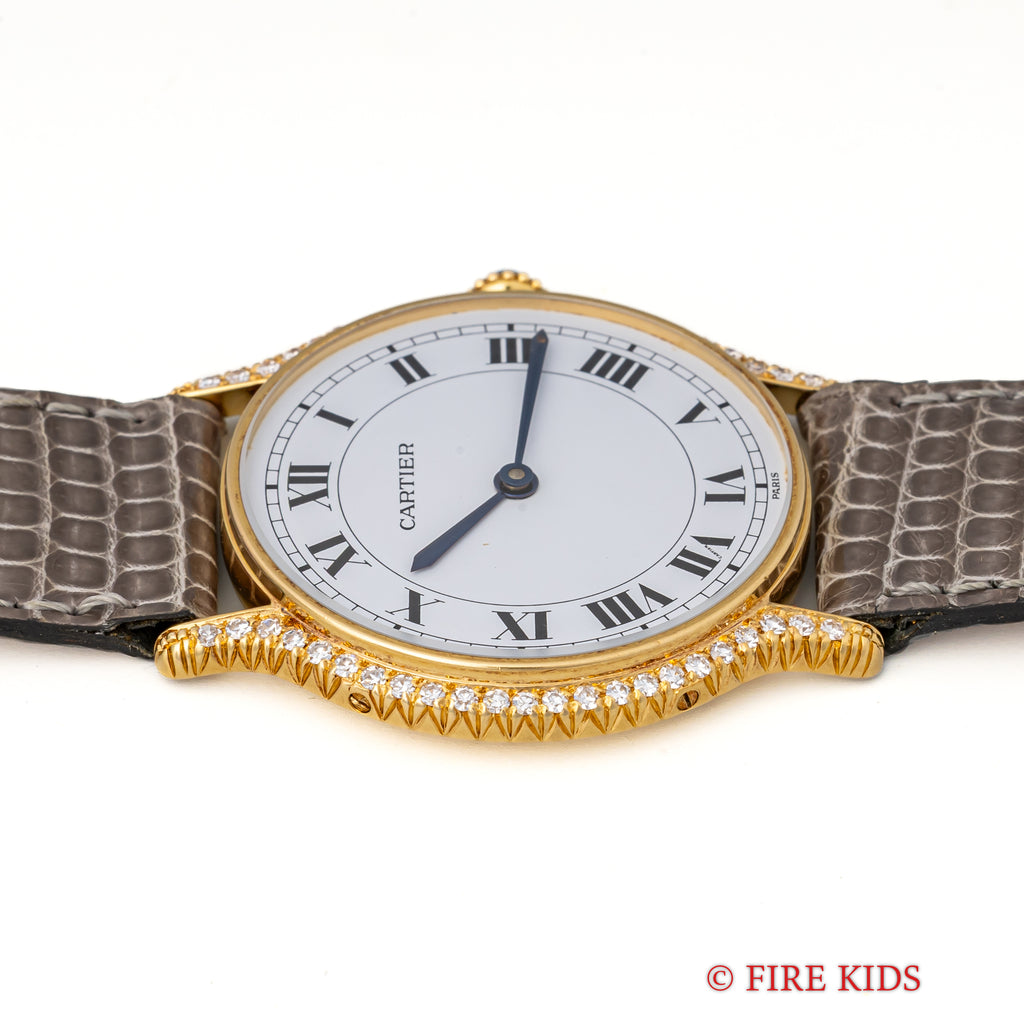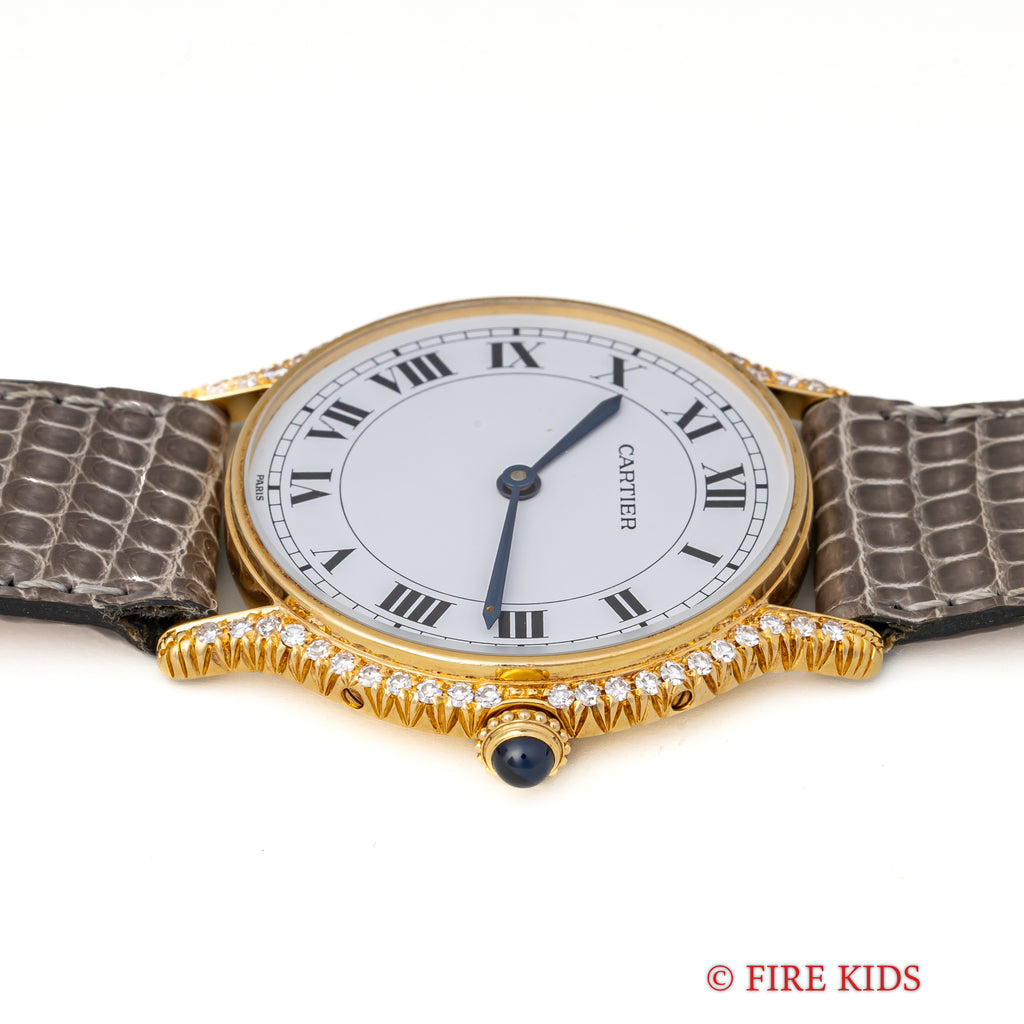 カルティエ リヴィエラLM PARISダイヤル 18金無垢 イエローゴールド フルダイヤ 1980年代製 箱付き