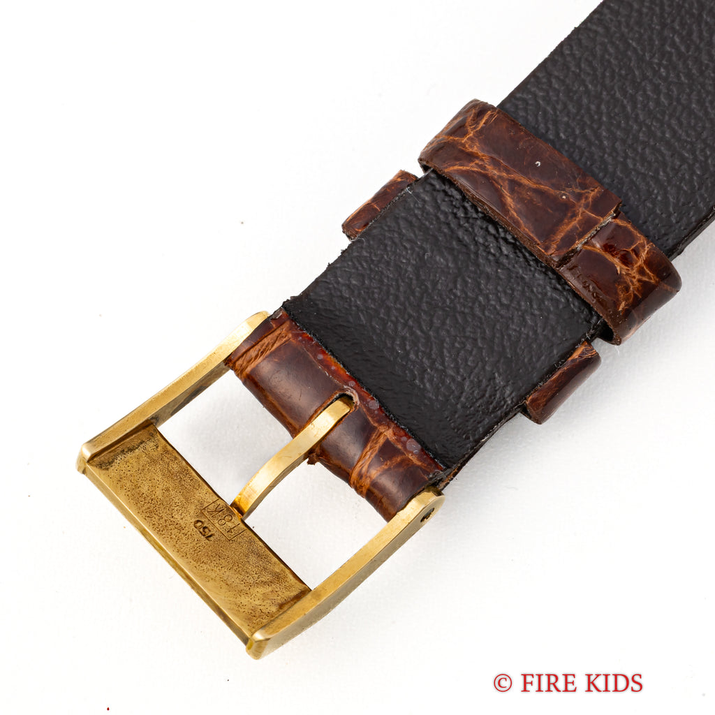 IWC ラウンド デラックス 1965年製 Cal.401 箱付き 純正金無垢尾錠付きです。薄型手巻きのCal.401を搭載した一本です。金無垢で高級感があります。大きなダメージはありません。社外の艶有クロコダイルに純正金無垢尾錠を合わせています。こちらは分解掃除済みです。