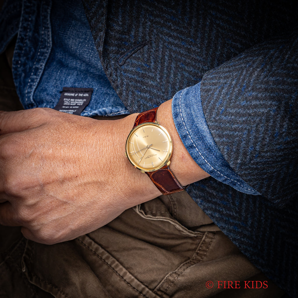 IWC ラウンド デラックス 18金無垢 1965年製 Cal.401 箱付き 純正金無垢尾錠付き
