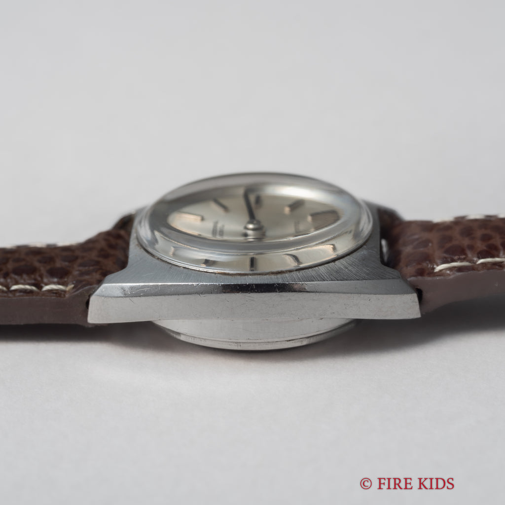 • ヴィンテージ時計の特性上、風防・パッキン・リューズ・バネ棒などの消耗部品は後年メンテナンス過程で交換されている場合がございます。オリジナル性を重視しておりますが、必要に応じて適切な部品にて調整されていますので、よりコレクション性重視のお求めのお客様は事前にご確認ください。