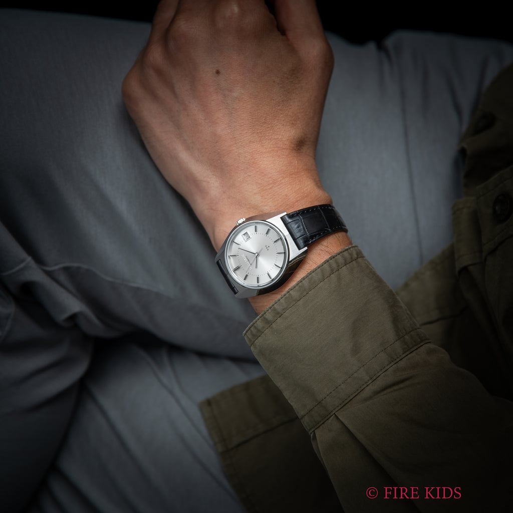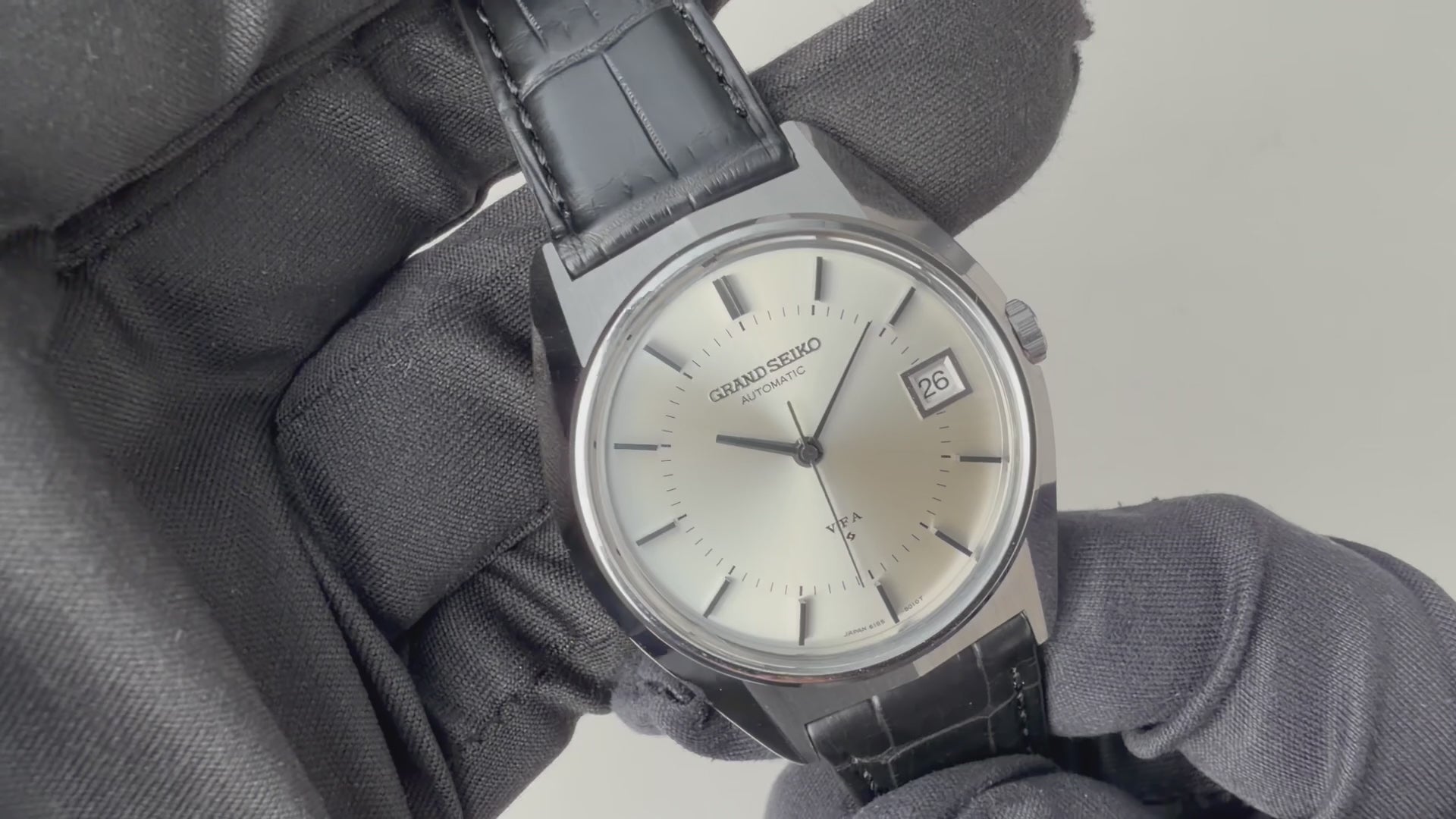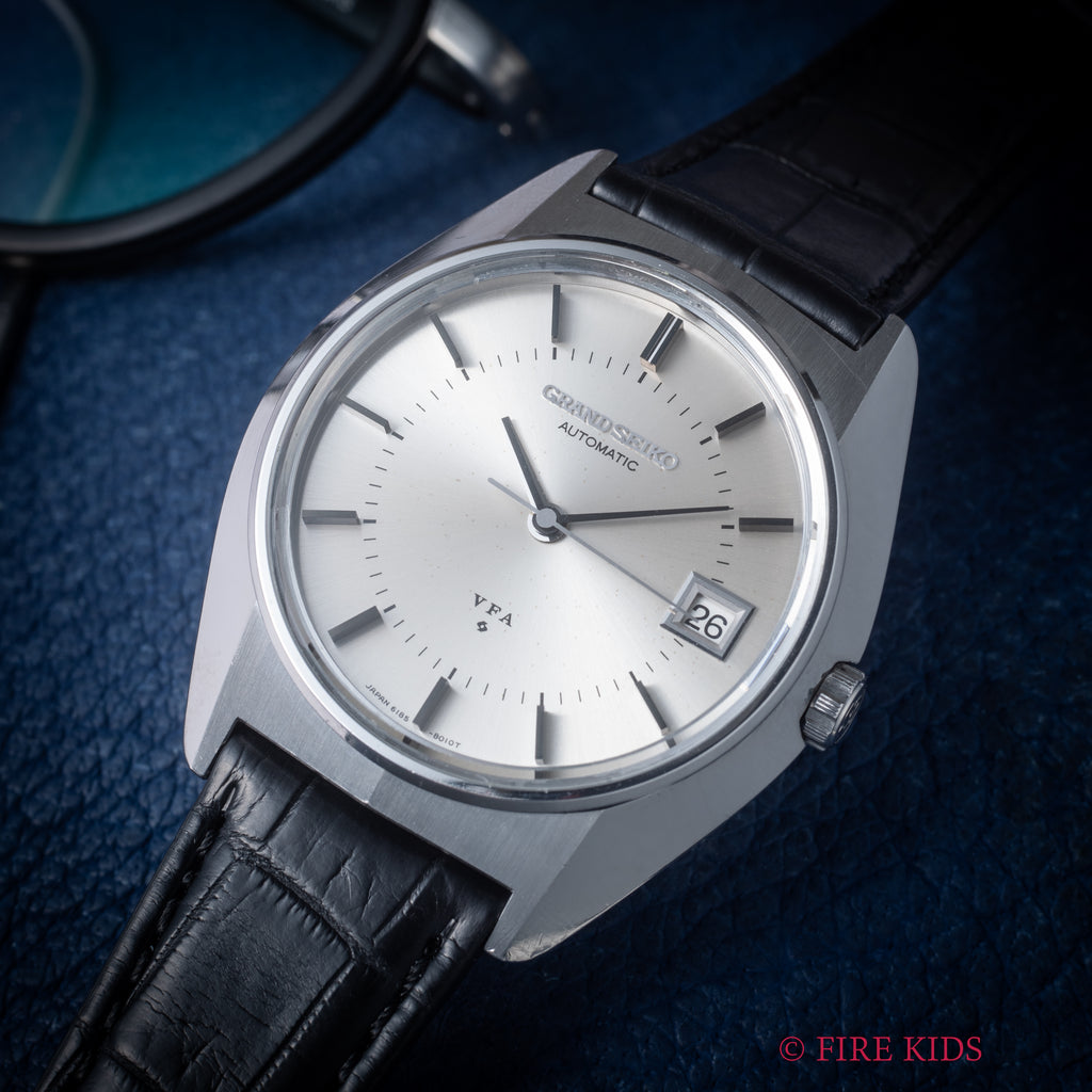 グランドセイコー V.F.A 1971年製 Ref.6185-8021-G 10振動自動巻 2025年3月メーカーメンテナンスの入荷になります。諏訪セイコーから製造された当時月差±1分以内という超高精度の調整が施された特別調整品(Very Fine Adjusted)です。ムーブメントは10振動(36000振動)で自動巻きのCal.6185Bを搭載。ケース、文字盤のコンディションも良く大きなダメージはございません。手巻きや針回しの操作はスムースです。ベルトはファイアーキッズオリジナルのクロコダイルが取り付けられています。2025年3月にグランドセイコーサービスにて分解掃除済みです。