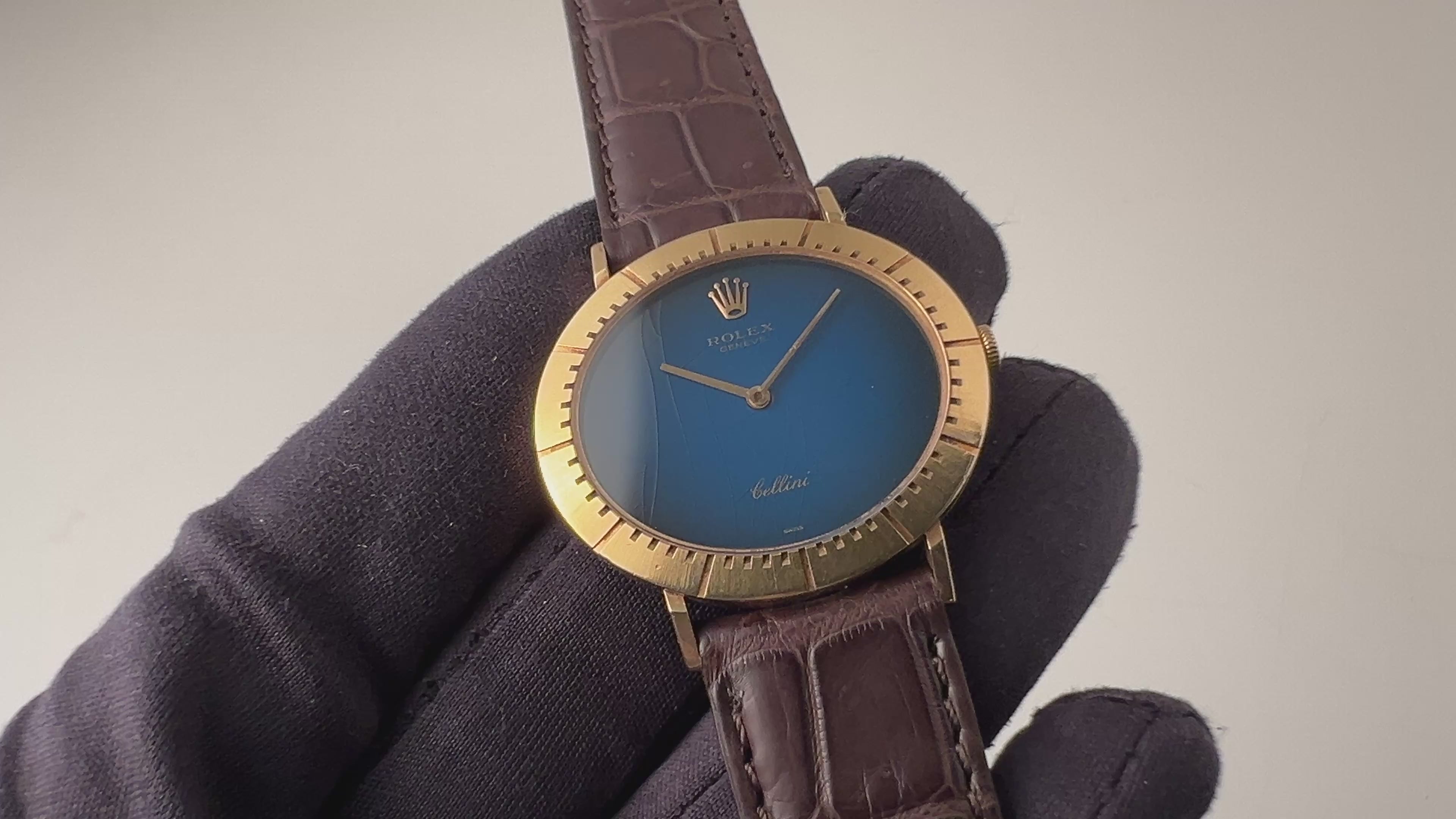 ロレックス チェリーニ 18金無垢イエローゴールド 1973年製 オーバル型 ブルーグラデーション 手巻き Ref.4083