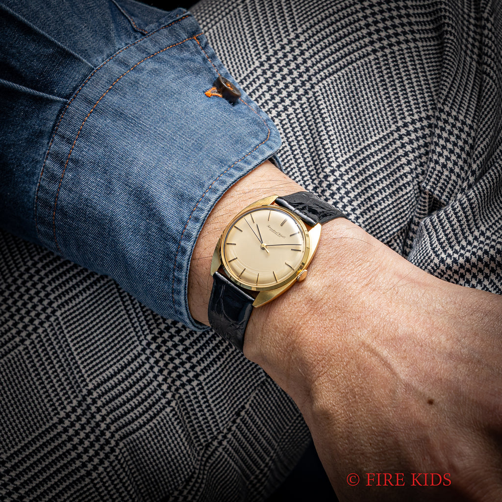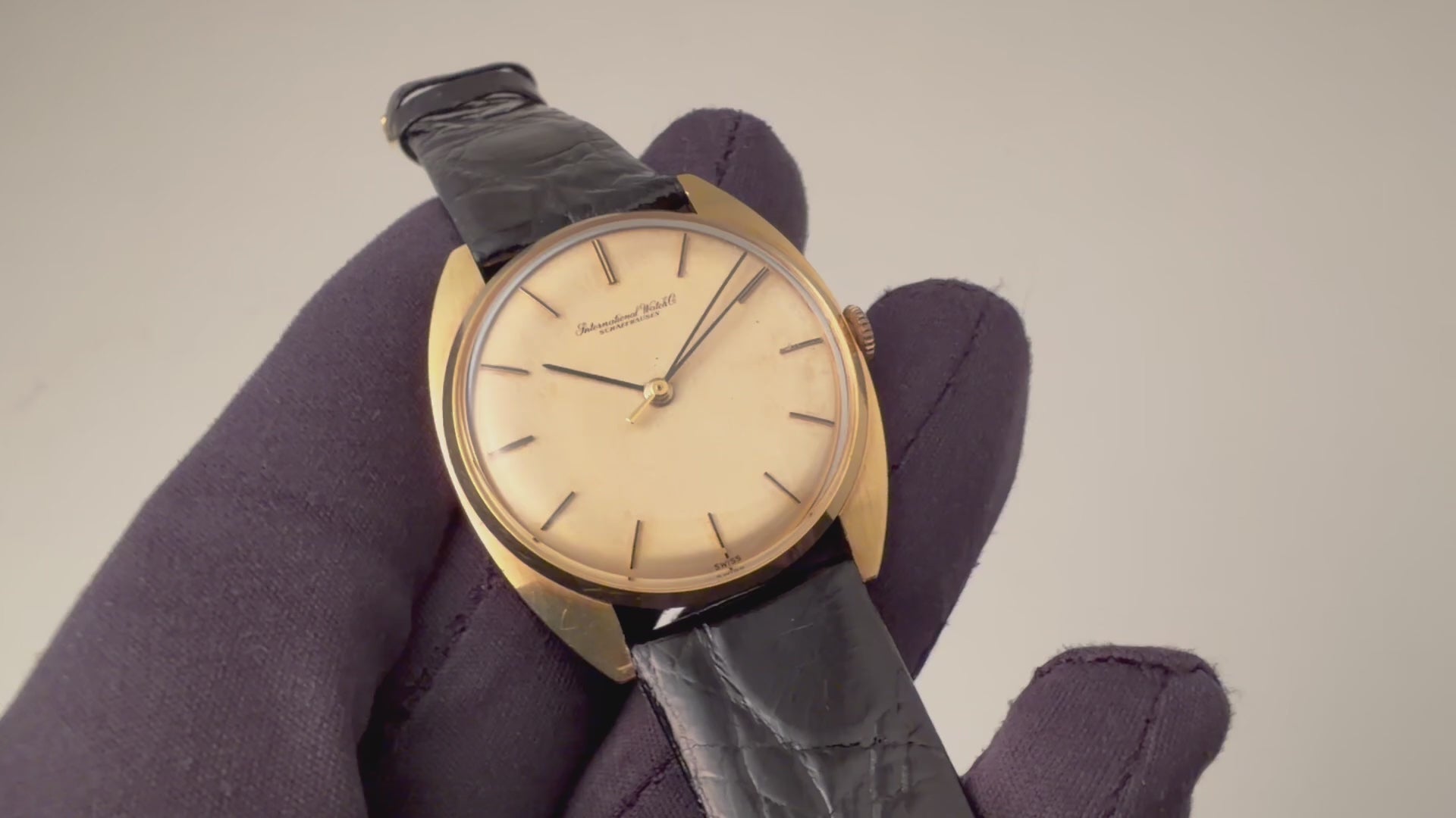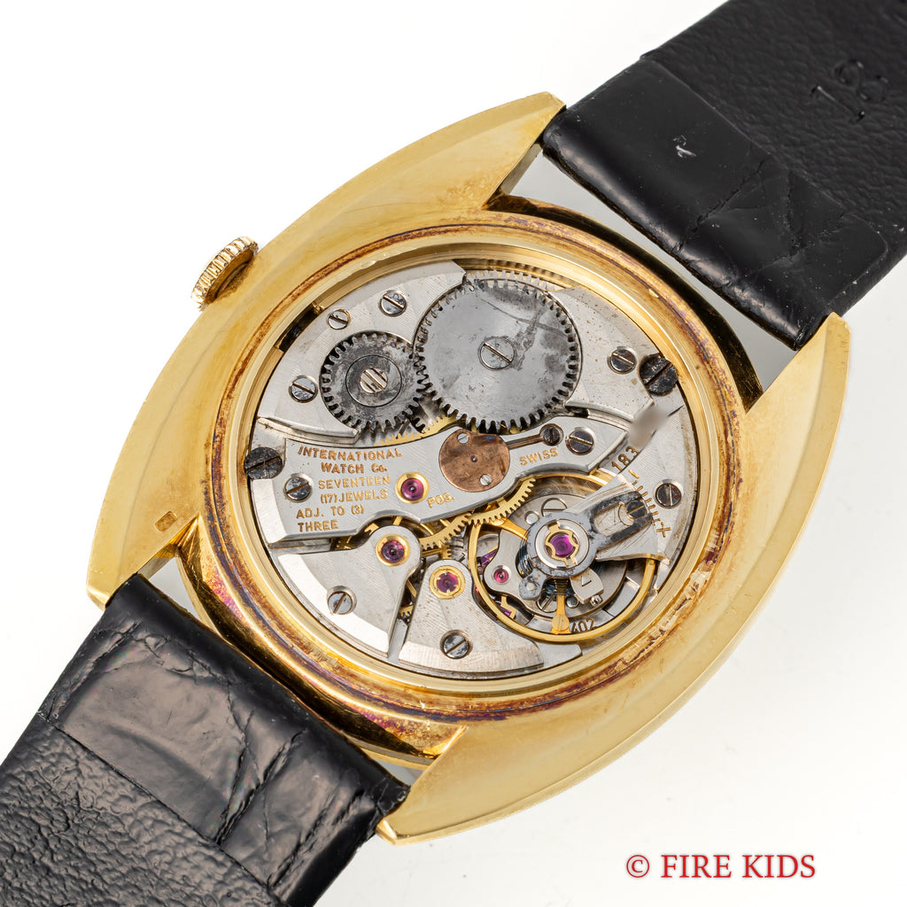 インターナショナルウォッチカンパニー 18金無垢トノーケース 1967年製 手巻 Cal.402 Ref.1419 薄型手巻ドレスウォッチの入荷になります。腕にフィットするトノー型薄型ケースでシンプルな文字盤が上品です。文字盤の緩やかなカーブに合わせて針も優雅にカーブしています。ケースは小傷がありますが大きなダメージはありません。手巻きや針回しの操作はスムースです。ベルトは社外のクロコダイルが取り付けられています。こちらの時計は分解掃除済みです。