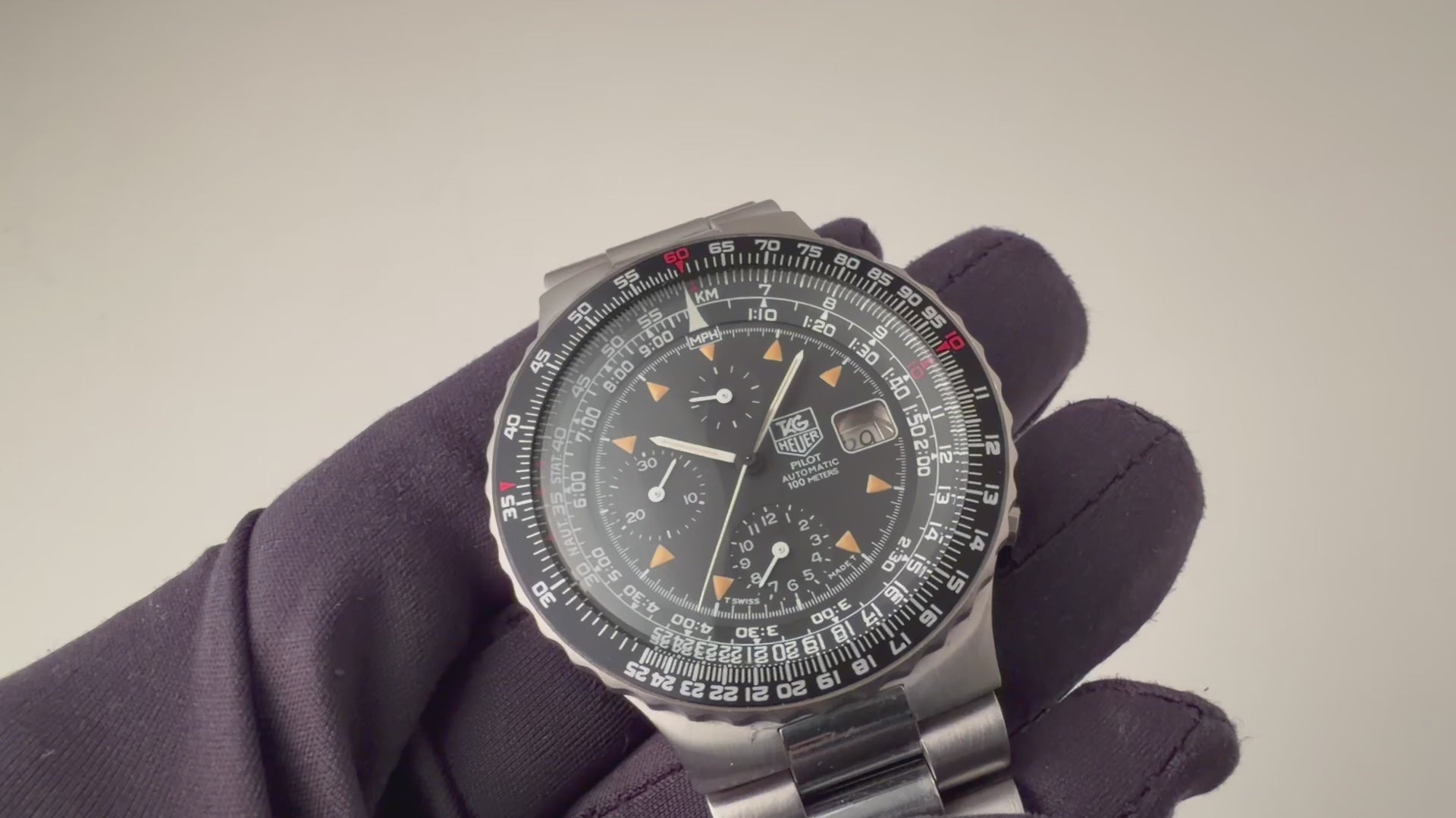 タグ・ホイヤー パイロットクロノグラフ 1980年代製 自動巻クロノグラフ 純正ブレス 箱付
