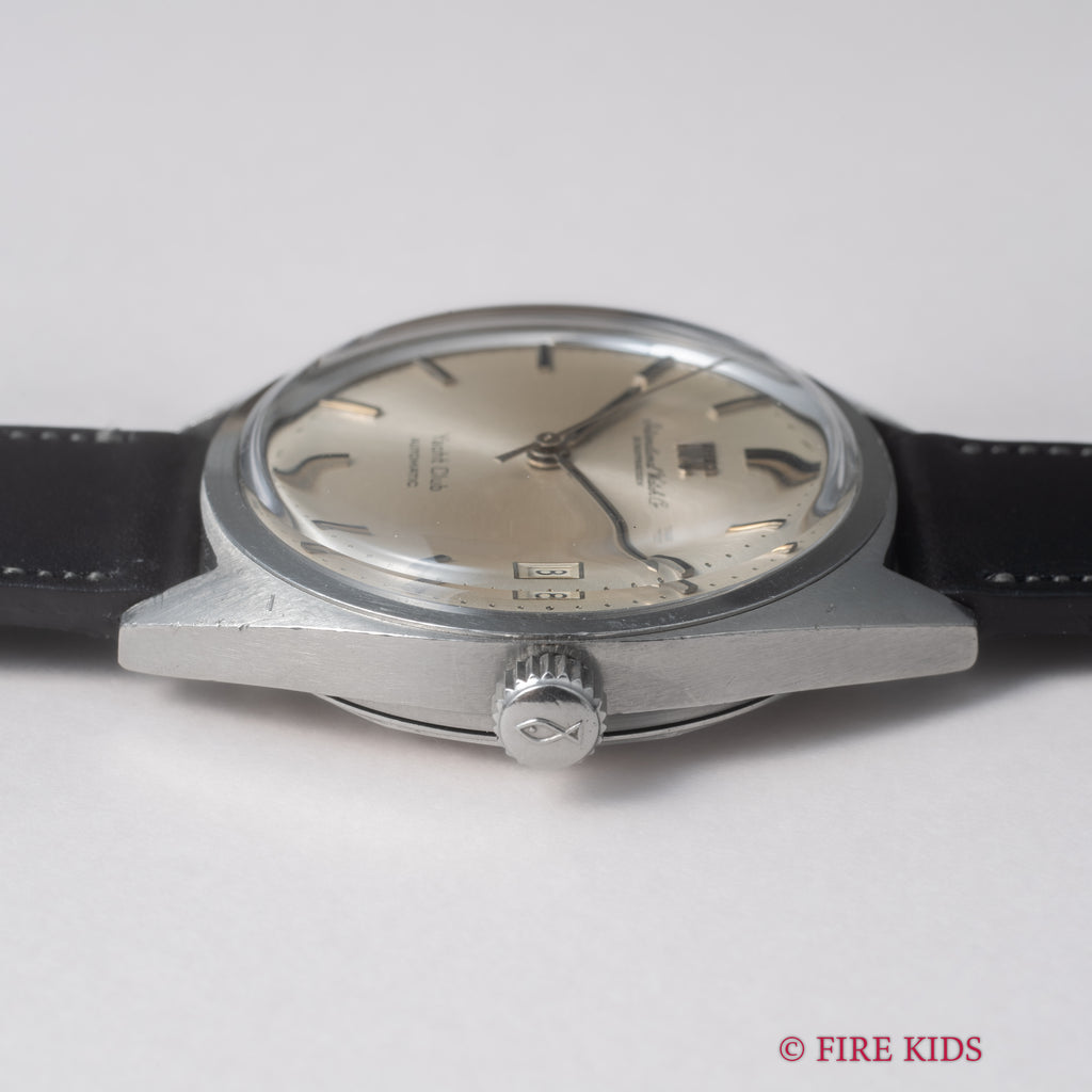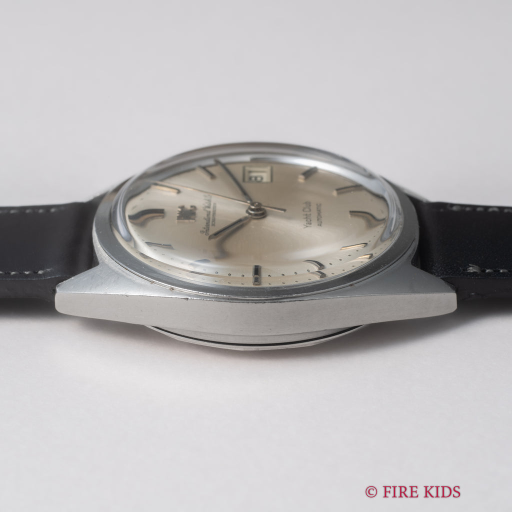 IWC ヨットクラブ 1967年製 Ref.R811A ペラトン式自動巻 Cal.8541 シルバーダイヤルの入荷になります。シンプルながら防水構造のスポーツウォッチで、しっかりとした厚みがあり存在感があります。文字盤は非常に綺麗です。ケースは小傷や裏蓋に工具を滑らせたような跡がごございますが磨き感は少なく、オリジナルのフォルムを残しています。ムーブメントはペラトン式巻き上げのCal.8541を搭載し、手巻きや針回しの操作はスムースです。革ベルトはファイアーキッズオリジナルのイタリアンレザーのブッテーロ(裏面ラバー)が取り付けられています。こちらの時計は分解掃除済みです。