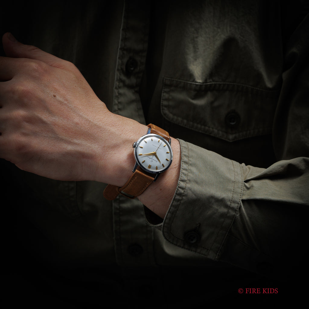 • ヴィンテージ時計の特性上、風防・パッキン・リューズ・バネ棒などの消耗部品は後年メンテナンス過程で交換されている場合がございます。オリジナル性を重視しておりますが、必要に応じて適切な部品にて調整されていますので、よりコレクション性重視のお求めのお客様は事前にご確認ください。