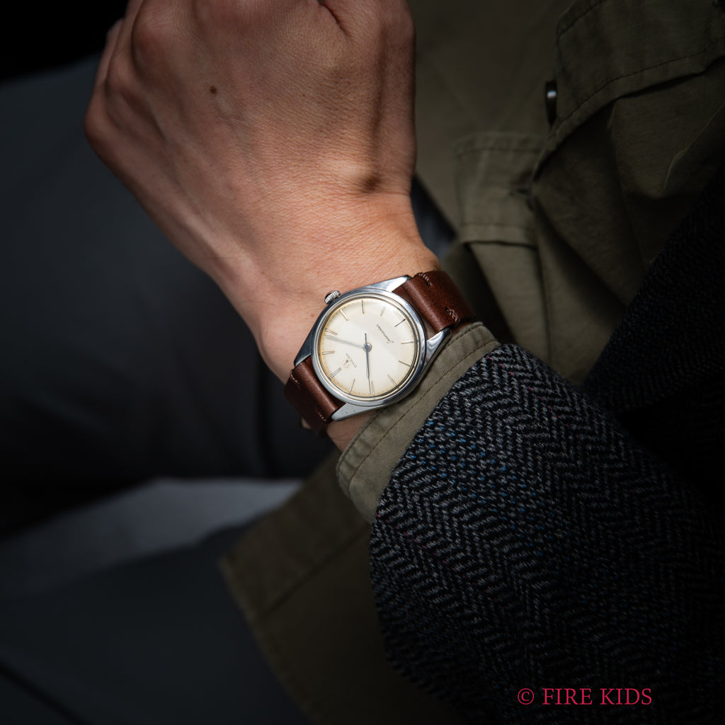 • ヴィンテージ時計の特性上、風防・パッキン・リューズ・バネ棒などの消耗部品は後年メンテナンス過程で交換されている場合がございます。オリジナル性を重視しておりますが、必要に応じて適切な部品にて調整されていますので、よりコレクション性重視のお求めのお客様は事前にご確認ください。