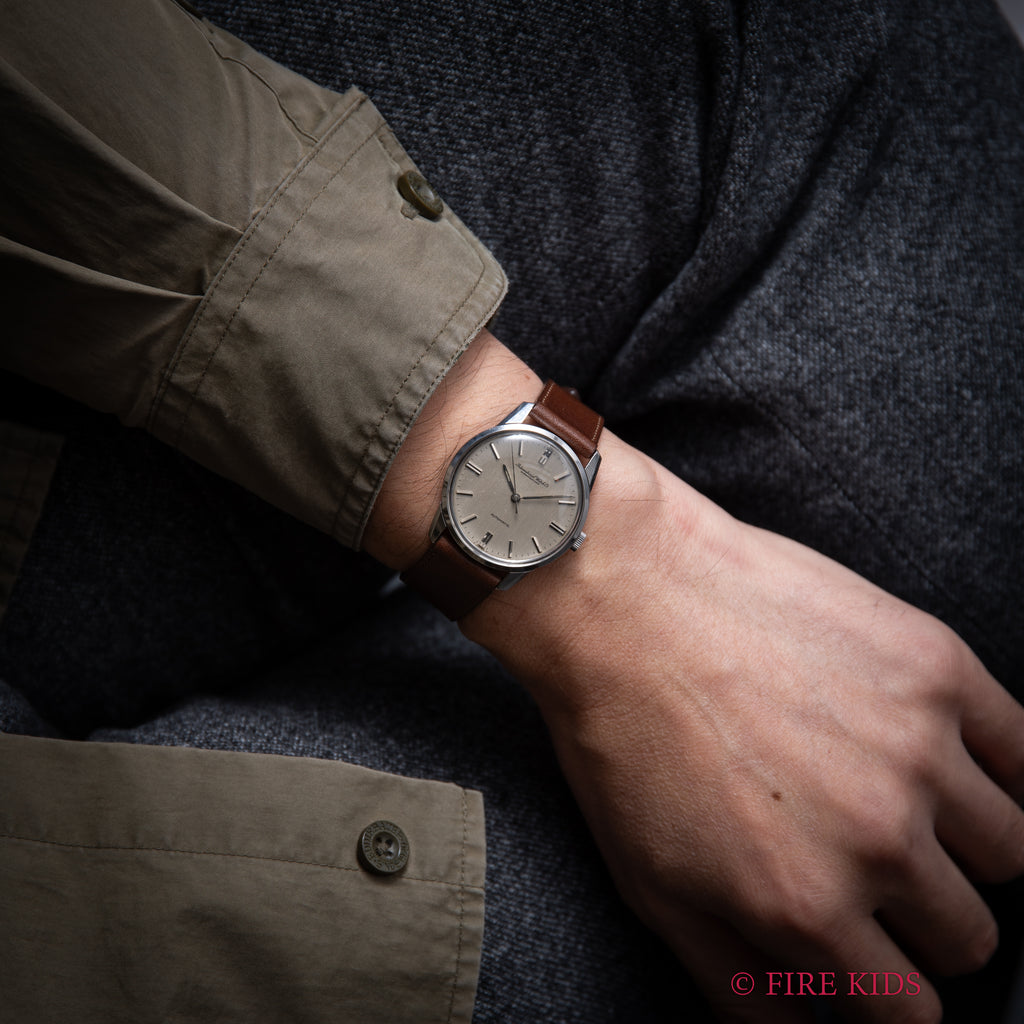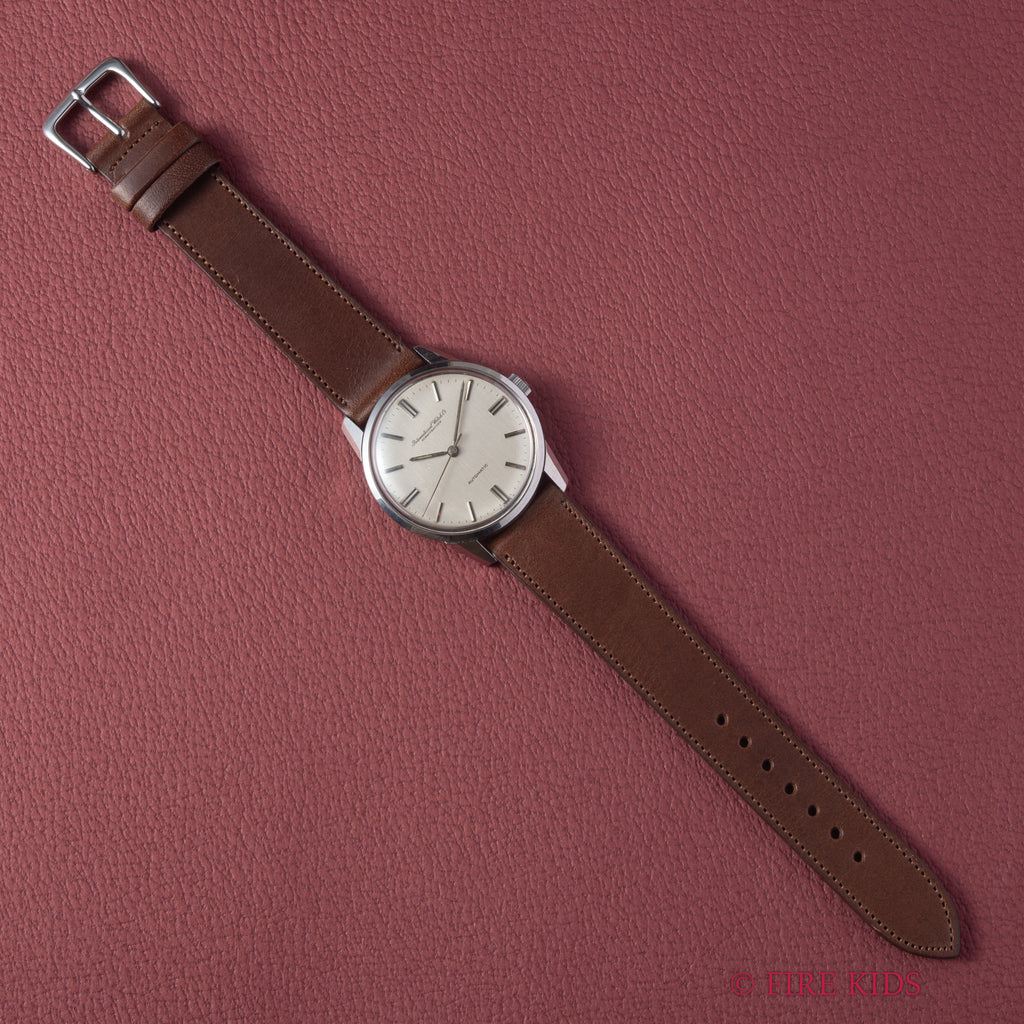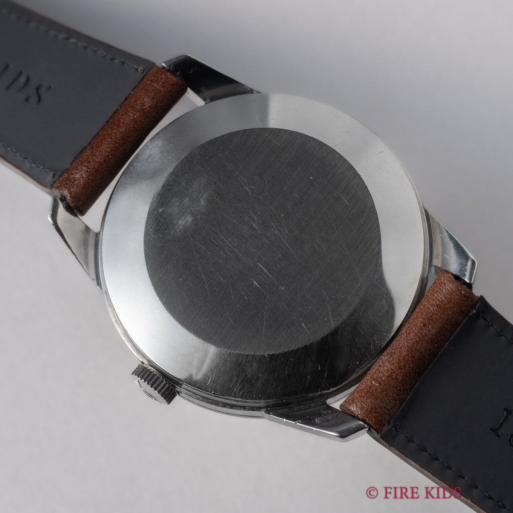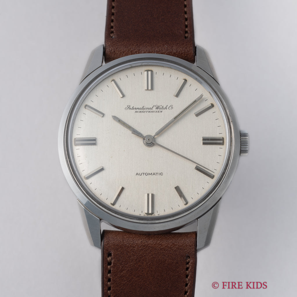 IWC 1967年製 ラウンドケース ペラトン式自動巻き Cal.854 R810A お魚リューズの入荷になります。ペラトン式自動巻きの完成形Cal.854を搭載したモデルでオールドインターらしいシンプルな質実剛健なモデルです。シンプルだからこそ造りの良さが感じられます。Ref.R810のケースで筆記体ロゴのみのタイプというのも良いです。ケースは小傷がありますが大きなダメージはありません。革ベルトはファイアーキッズオリジナルのブッテーロカーフレザーを合わせています。こちらは分解掃除済みです。