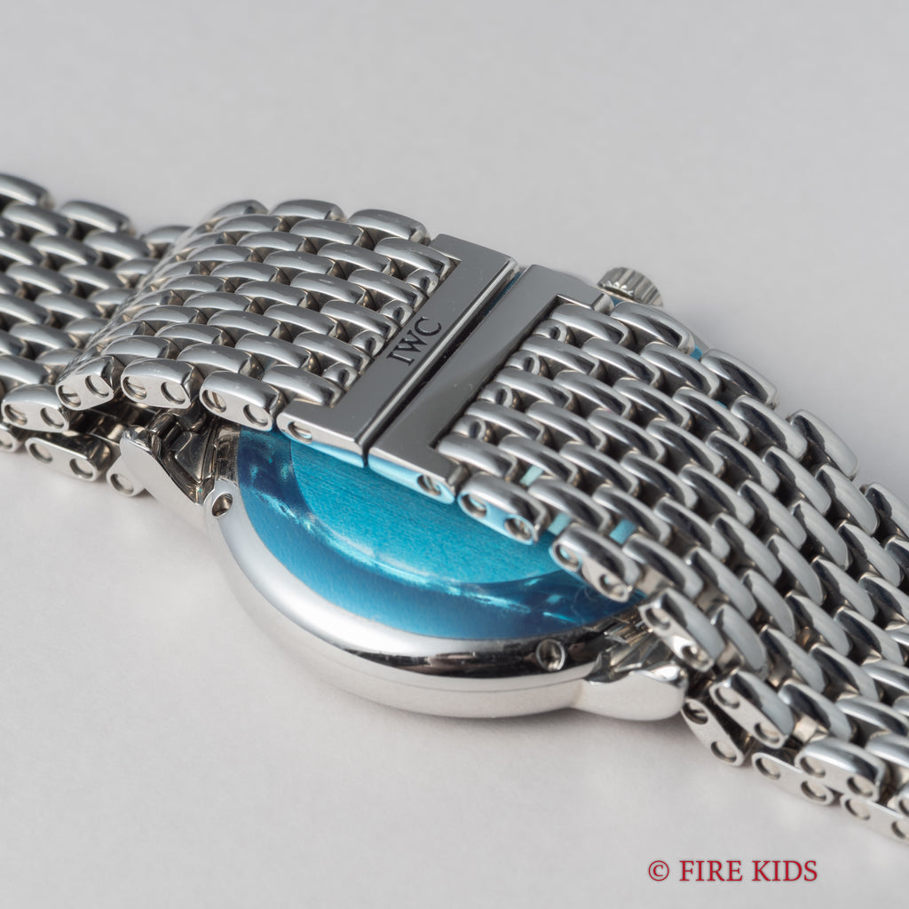 IWC ポートフィノ ホワイトダイアル 1994年製 自動巻き Ref.IW3513 純正ブレス付きの入荷になります。インターの代表的なモデルであるポートフィノ、ラウンド状のステンレスケースに艶やかなエナメルホワイト文字盤が上品かつシンプルなデザインが魅力です。控え目なIWC表記に筆記体のインターナショナル ウオッチカンパニー表記も抜群の雰囲気です。ケースは小傷はございますが大きなダメージはございません。手巻きや針回しの操作はスムースです。ベルトは純正ステンレスブレスが取り付けてあります。