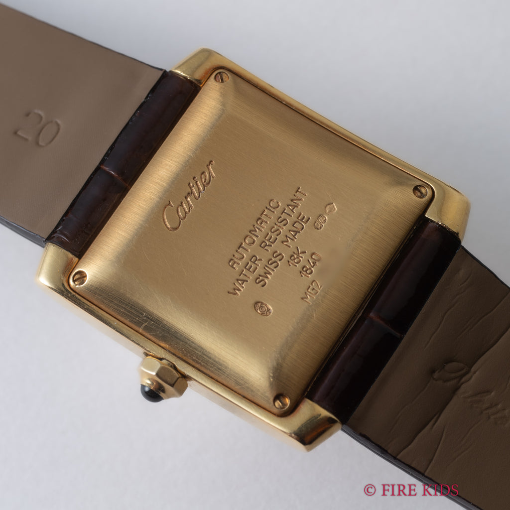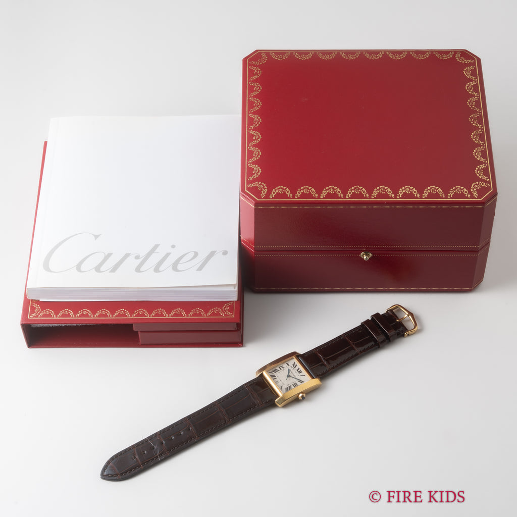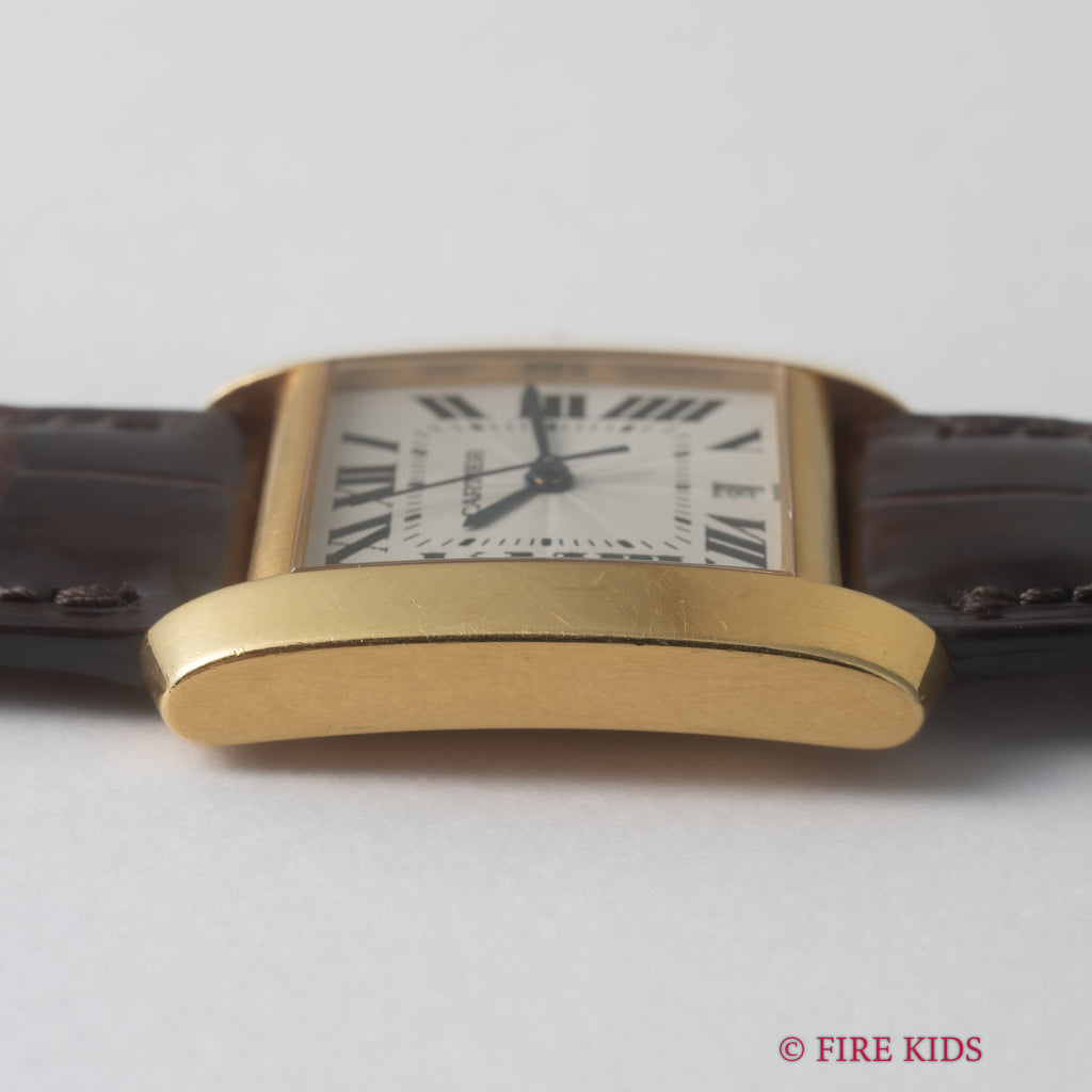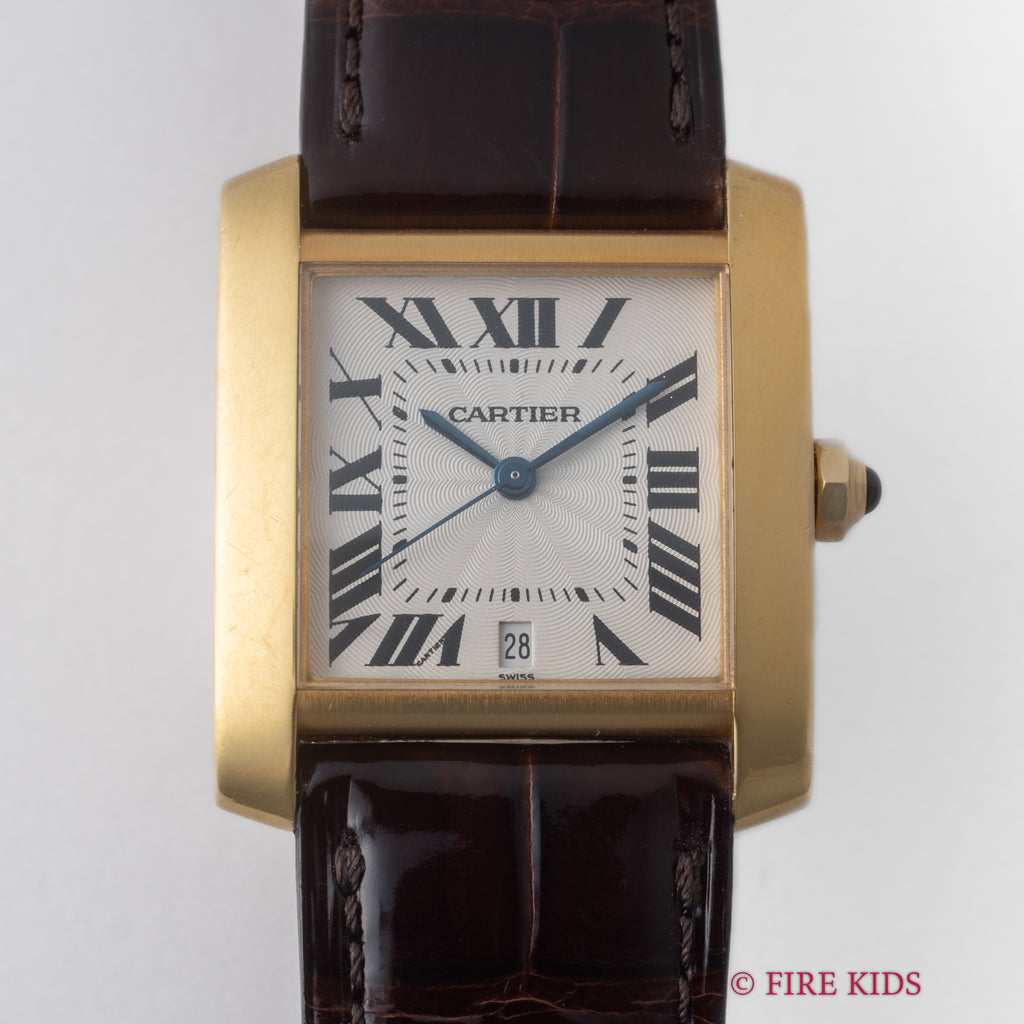 カルティエ 18金無垢イエローゴールド タンクフランセーズ LMサイズ 1990年代製 ギョーシェダイヤル 純正金無垢尾錠付き 箱、冊子付き