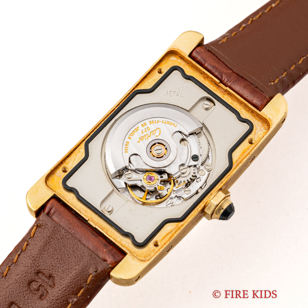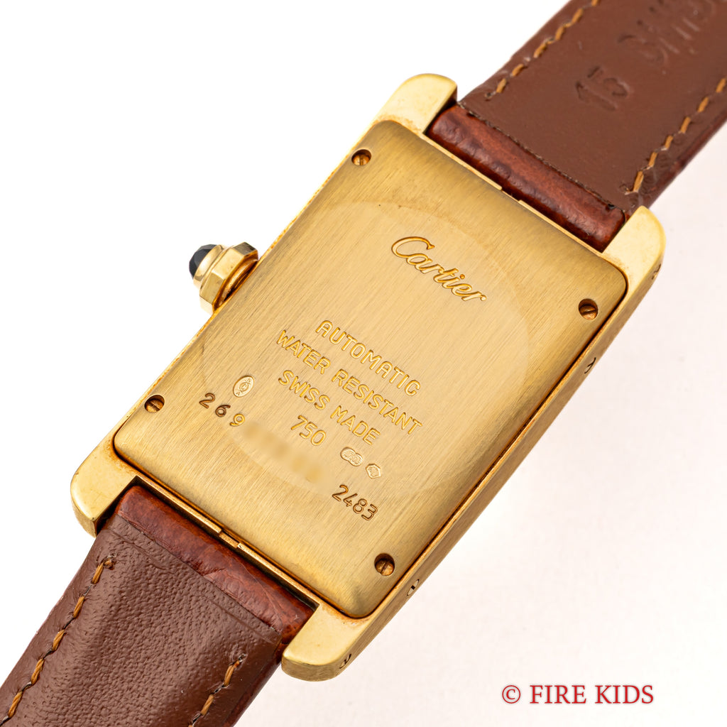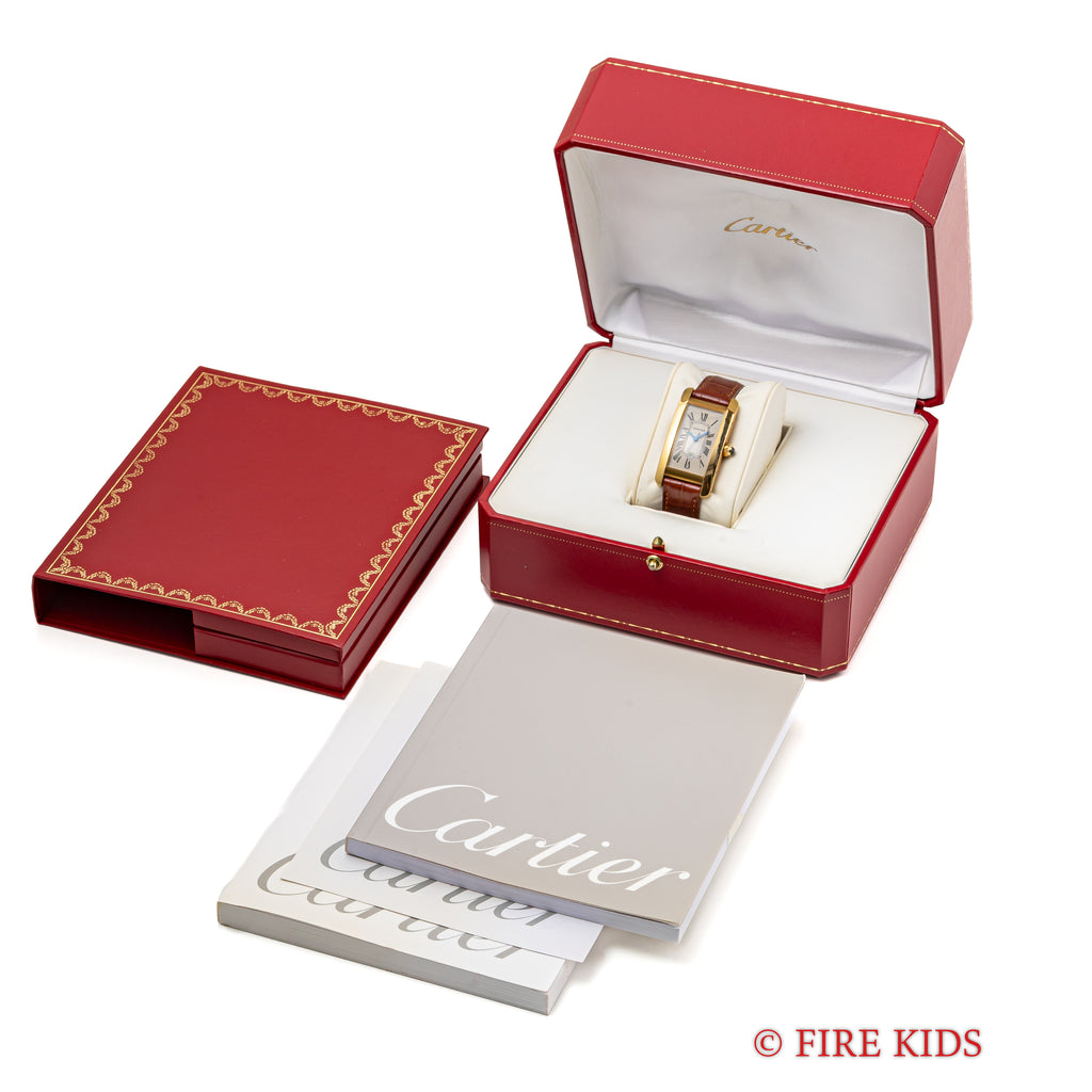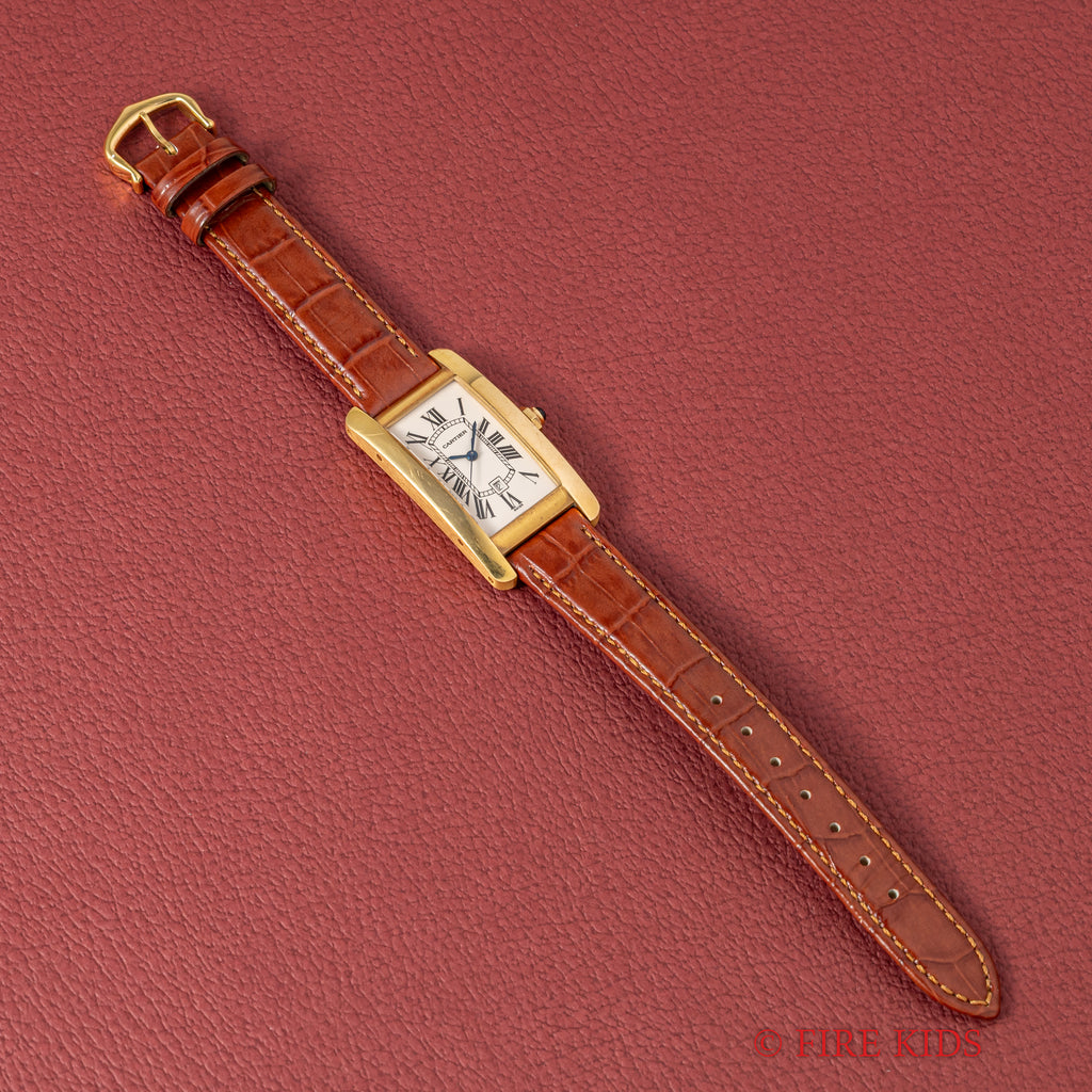 カルティエ 18金無垢タンク アメリカン MMサイズ 2002年発行ギャラ 自動巻 純正金無垢尾錠付 箱付き