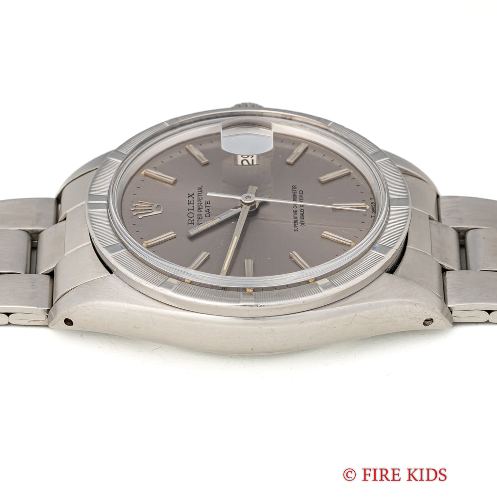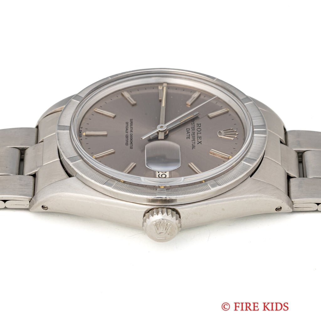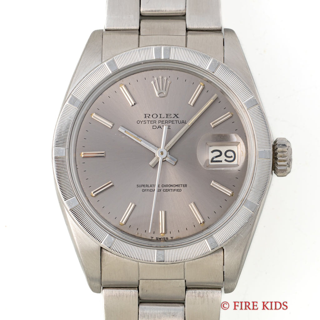 ロレックス オイスターパーペチュアルデイト 1971年製 パープルグレーダイヤル エンジンターンドベゼル Ref.1501 純正ブレス付き