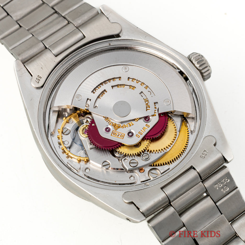 • ヴィンテージ時計の特性上、風防・パッキン・リューズ・バネ棒などの消耗部品は後年メンテナンス過程で交換されている場合がございます。オリジナル性を重視しておりますが、必要に応じて適切な部品にて調整されていますので、よりコレクション性重視のお求めのお客様は事前にご確認ください。