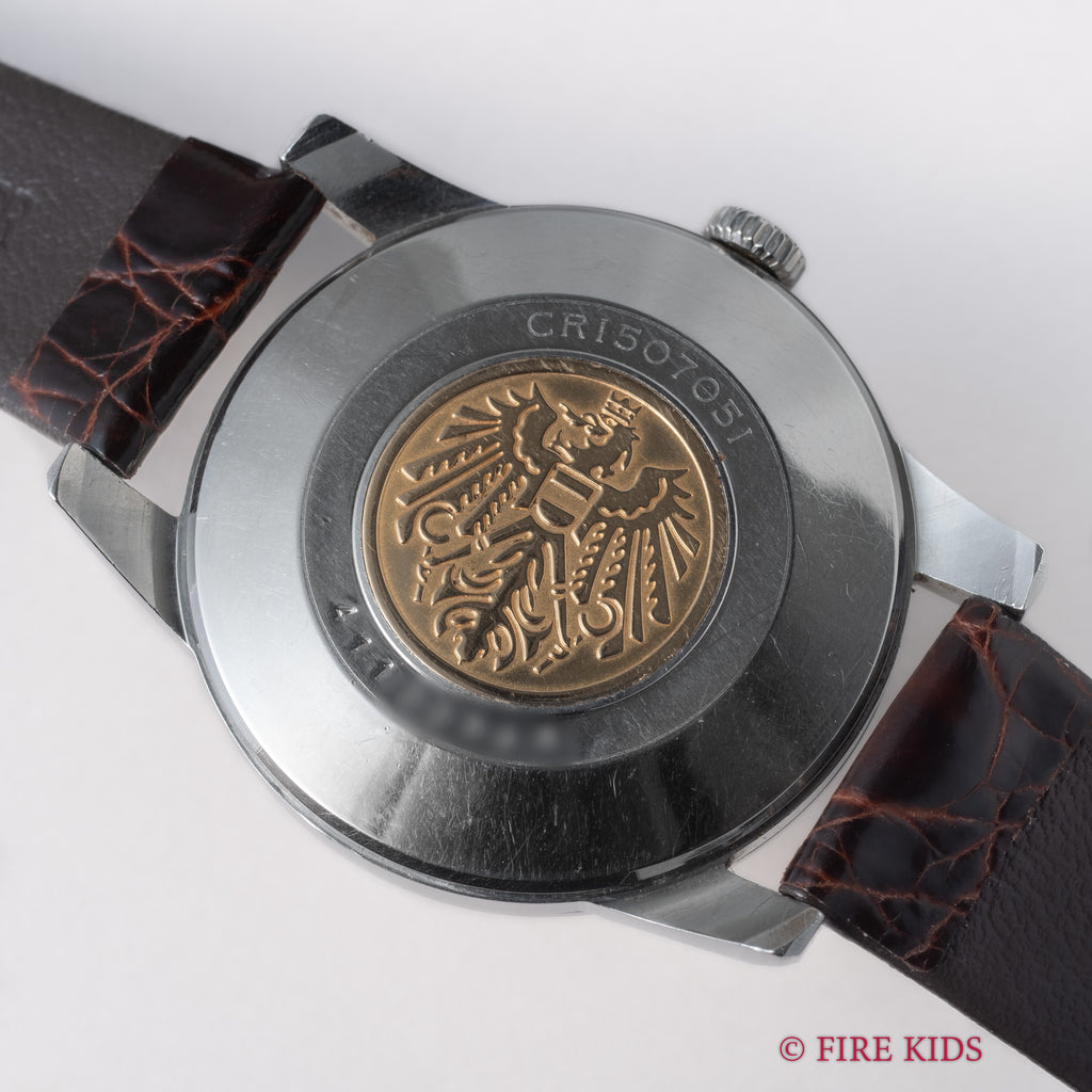 国産腕時計最高峰の一つと言われているシチズンの名機「クロノメーターCR1507051」1964年製です。 1962年から1966年までの約4年間のみ製造されたモデルで、採算を度外視して造られた為に短命になったと言われているスペシャルピースです。人気のステンレスケースで非常に美しい外観と精度を重視した大型ムーブメントは惚れ惚れとします。ケースは小傷が見られますが大きなダメージや腐食は見られません。鷲のメダリオンも綺麗に残っています。ベルトは社外のクロコダイルが取り付けてあります。手巻きや針回しの操作はスムースです。