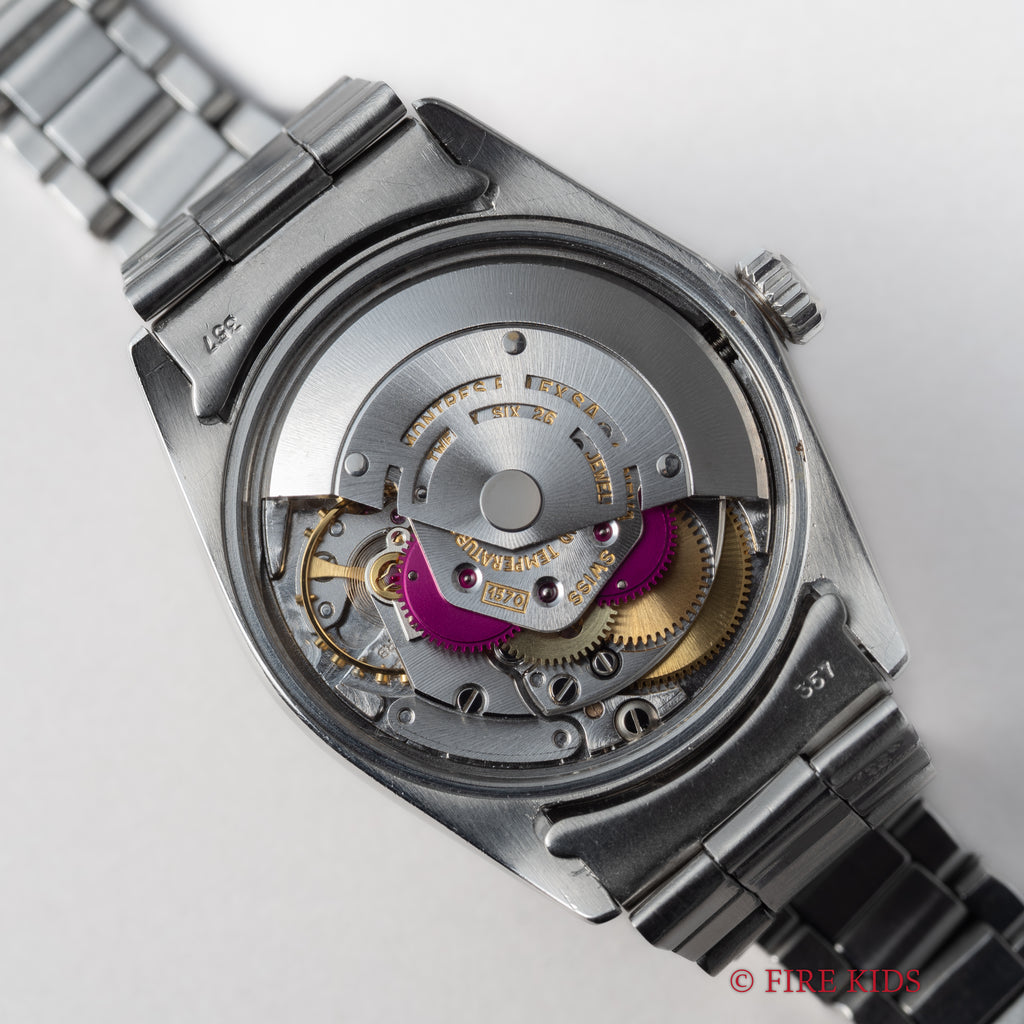 • ヴィンテージ時計の特性上、風防・パッキン・リューズ・バネ棒などの消耗部品は後年メンテナンス過程で交換されている場合がございます。オリジナル性を重視しておりますが、必要に応じて適切な部品にて調整されていますので、よりコレクション性重視のお求めのお客様は事前にご確認ください。