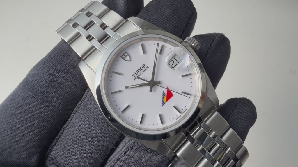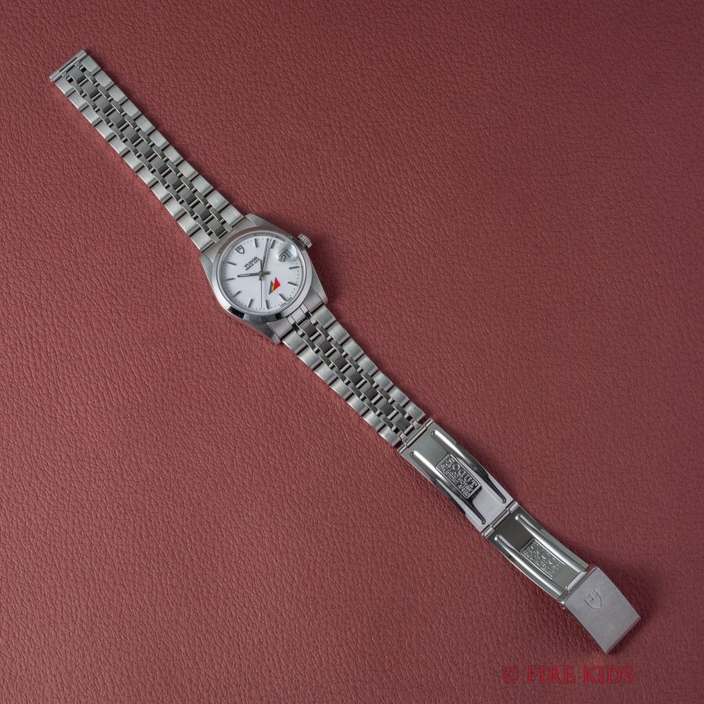 チューダープリンスデイト 2000年製フィリピンエアラインRef.74000です。6時の位置にフィリピンエアラインのロゴが入っていますので人とは違う1本すめです。ケースは使用感が無く、裏蓋にシールが残っておりケースは使用感が無く、裏蓋にシールが残っております。 文字盤は目立つシミ等無く綺麗です。 手巻きや針回しの操作はスムースです。純正のステンレスブレスが取り付けられています。こちらはギャラ、タグが付属いたします。