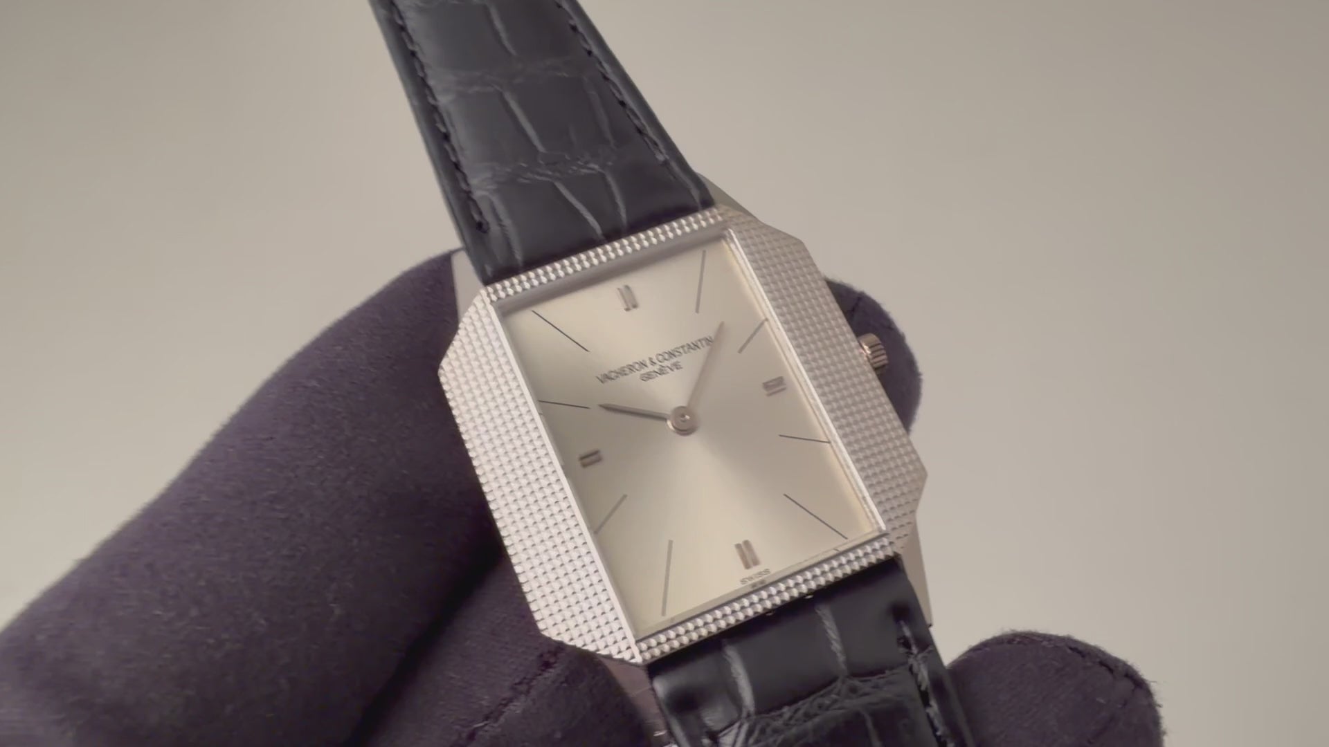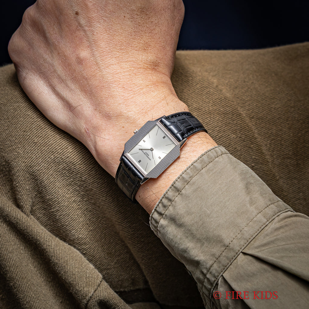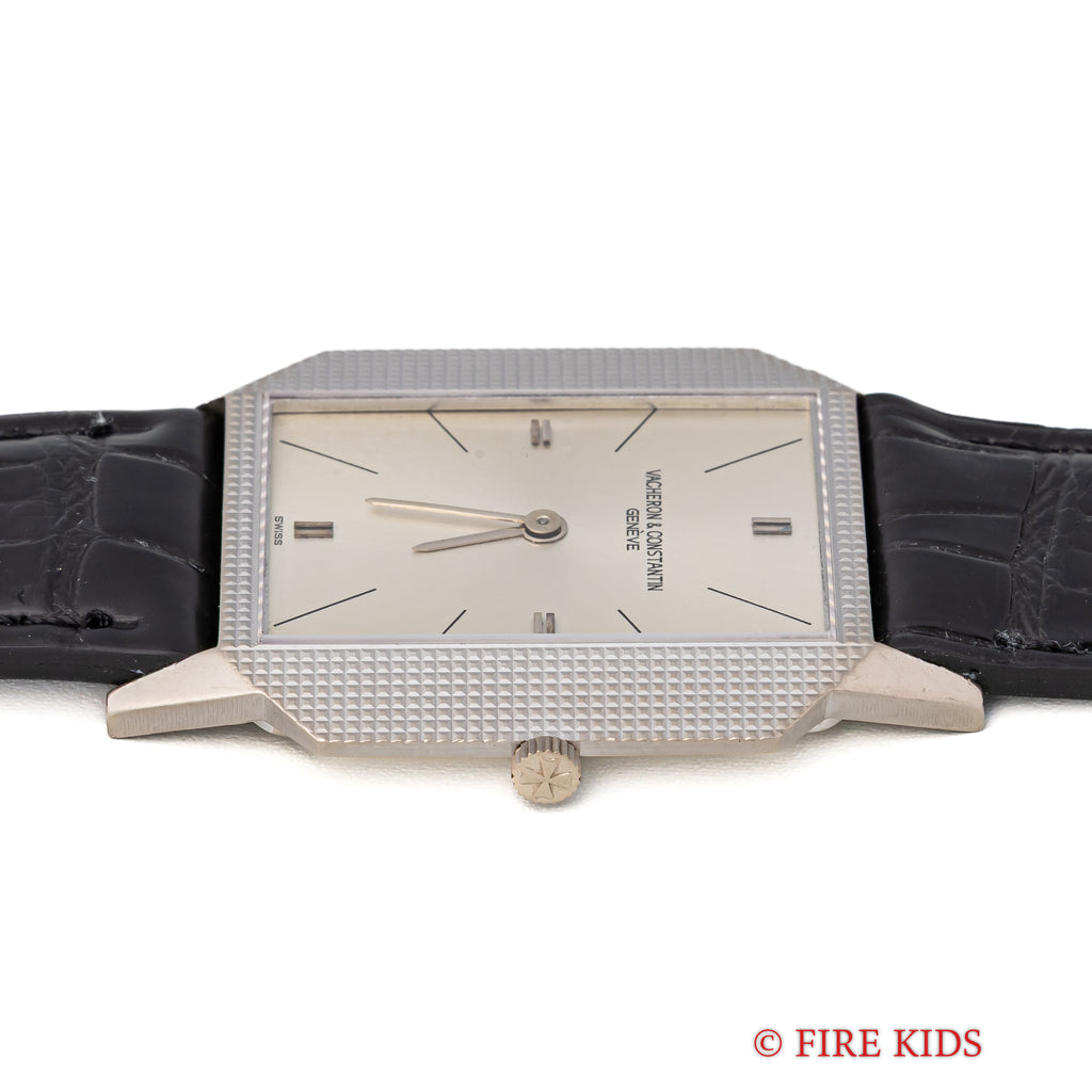 ヴァシュロン・コンスタンタン 18金無垢ホワイトゴールドスクエアケース 1970年代製 手巻 Cal.1003 Ref.6989の入荷になります。厚さ僅か4㎜強の薄型ドレスウォッチでエングレーブが施されたスクエアケースが魅力的です。文字盤はシミ等無く綺麗です。ケースは小傷が見られますが大きなダメージはありません。ムーブメントはジャガー・ルクルトベースのCal.1003を搭載しています。手巻きや針回しの操作はスムースです。ベルトはファイアーキッズオリジナルのクロコダイル革ベルトに純正WG尾錠が取り付けられています。
