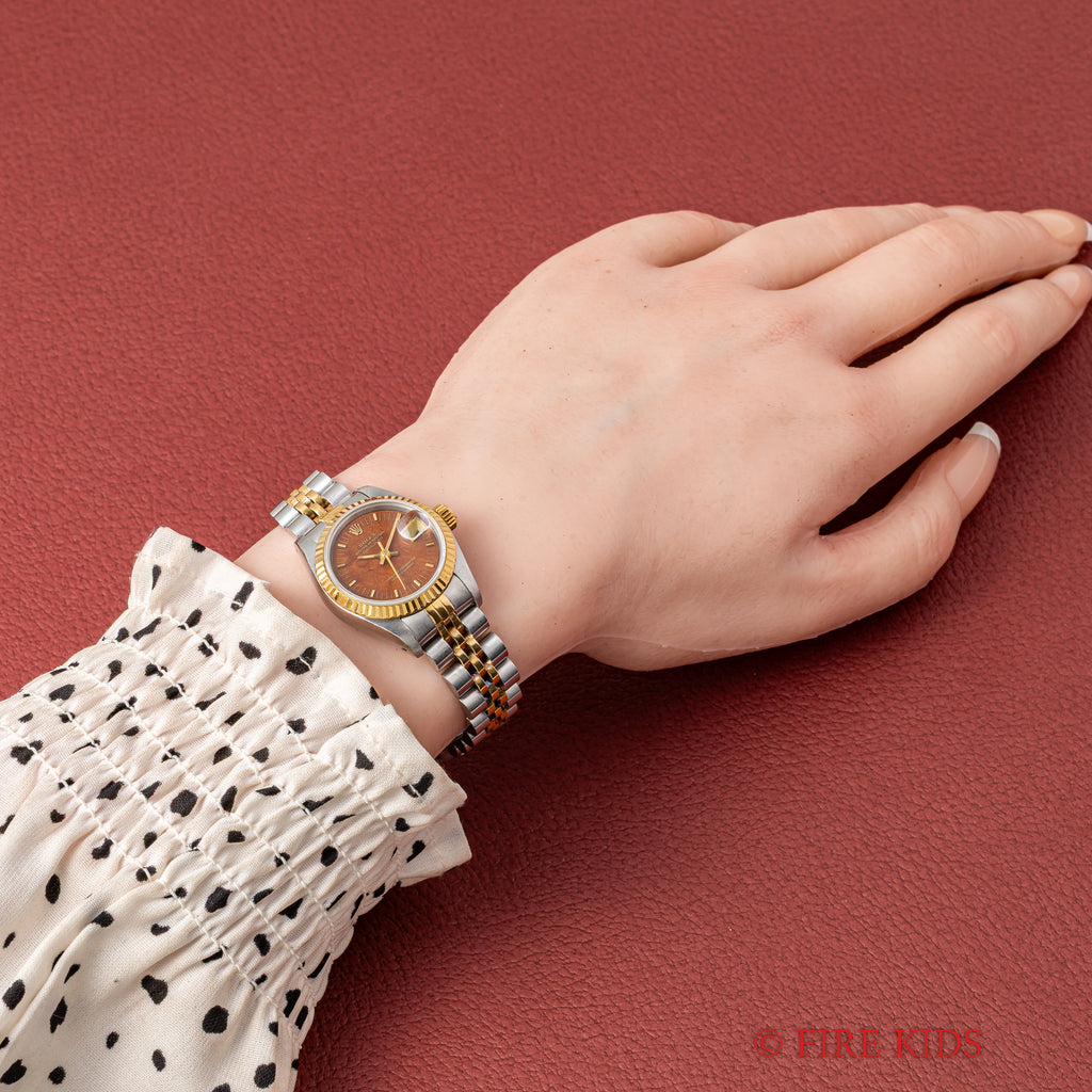 ロレックス デイトジャスト レディースコンビ ウッドダイヤル Ref.69173 1991年製 純正コンビブレス付き