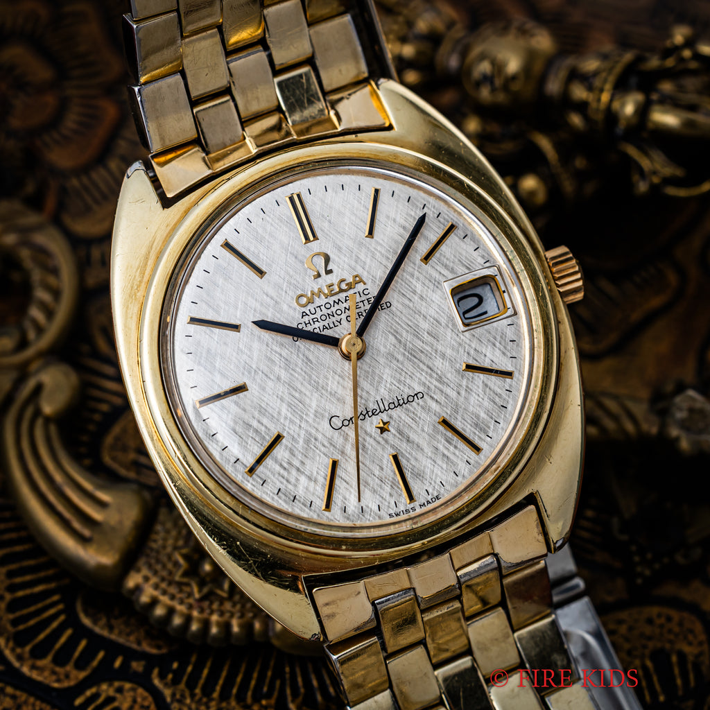 オメガ コンステレーション 1968年製 トップゴールドケース リネンダイヤル ジェンタデザイン 自動巻クロノメーター 純正ブレス