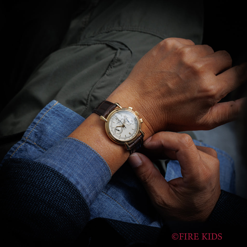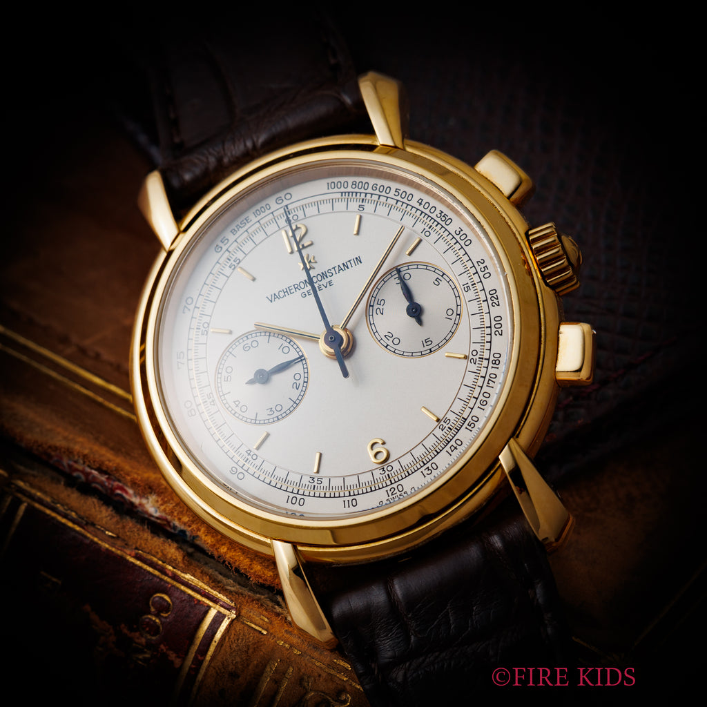ヴァシュロン・コンスタンタン ヒストリカル 2レジスタークロノグラフ 1990年代製 Ref.47101/218金無垢 純正尾錠の入荷になります。パテック・フィリップでも採用したレマニアのCal.27CHをベースにした2レジスタークロノグラフです。1940年代を思わせるクラシカルなデザインも魅力的です。文字盤、針、ケース、ムーブメントのどれを見ても芸術品レベルの仕上がりになっています。18金無垢ケースで裏蓋はスケルトンバックになっています。ベルトはファイアーキッズオリジナルのクロコダイル革ベルトに純正金無垢尾錠が取り付けられています。