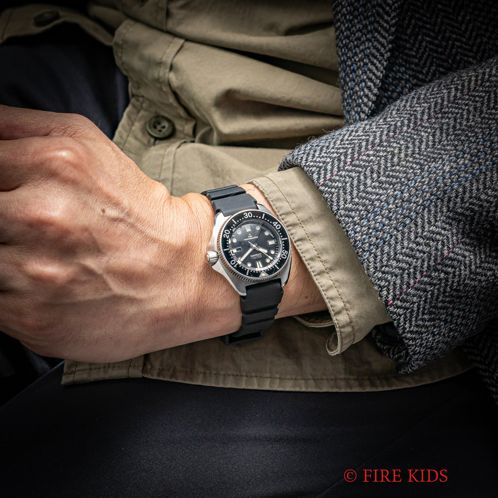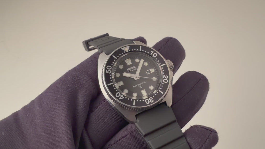 セイコー プロフェッショナル ダイバー 150m 1979年製 Ref.2205-0760 ボーイズサイズの入荷になります。ケース径約33mmの収まりの良いサイズ感でありながらプロフェショナル表記のある本格ダイバーズウオッチで男女ともご使用して頂けます。ムーブメントは自動巻きのCal.2205Aを搭載しています。ケース、ガラスは小傷程度で大きなダメージはありません。リューズのねじ込み、手巻きや針回し、リューズのねじ込みの操作はスムースです。ベルトは社外のウレタンベルトが取り付けられています。