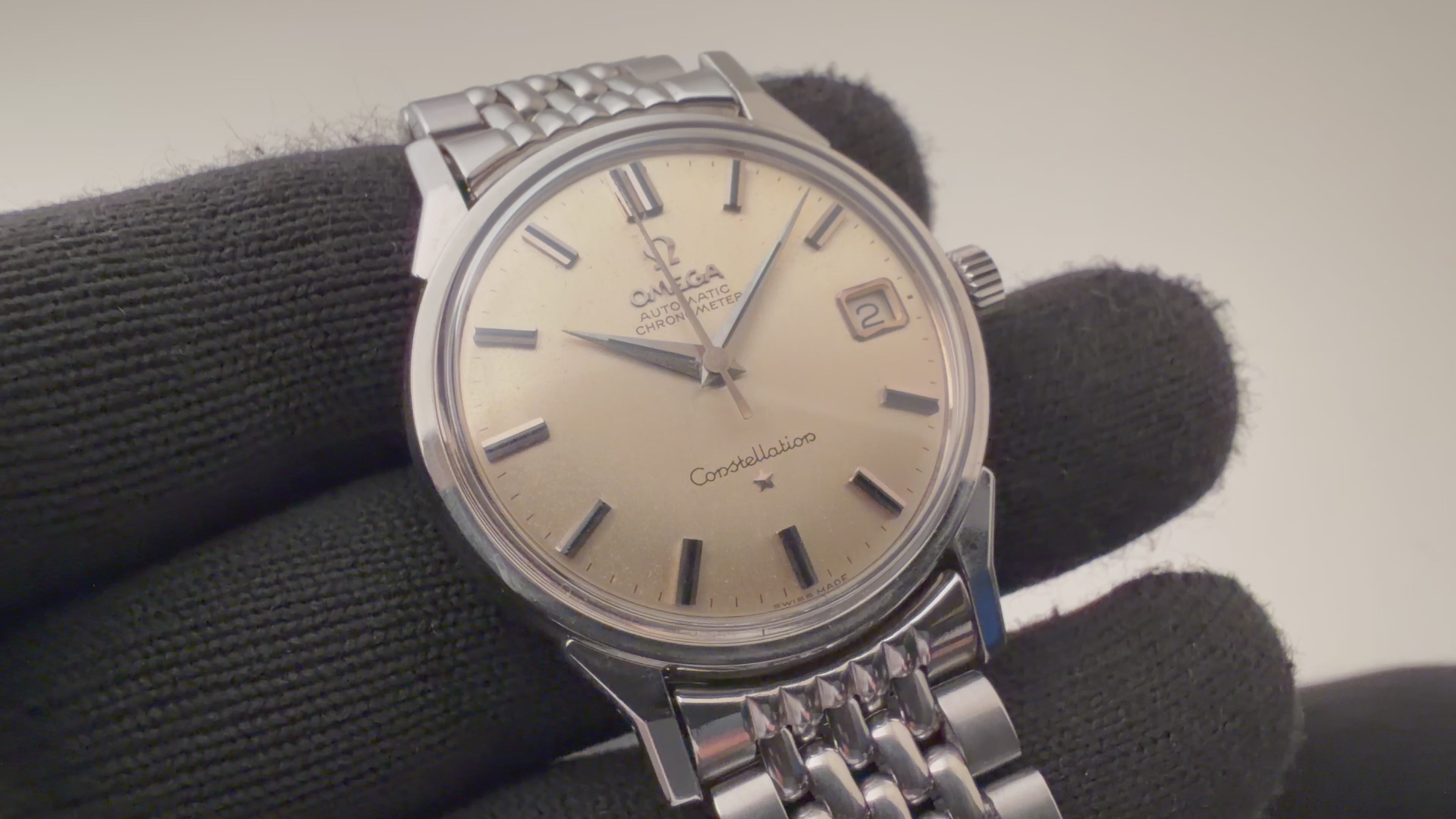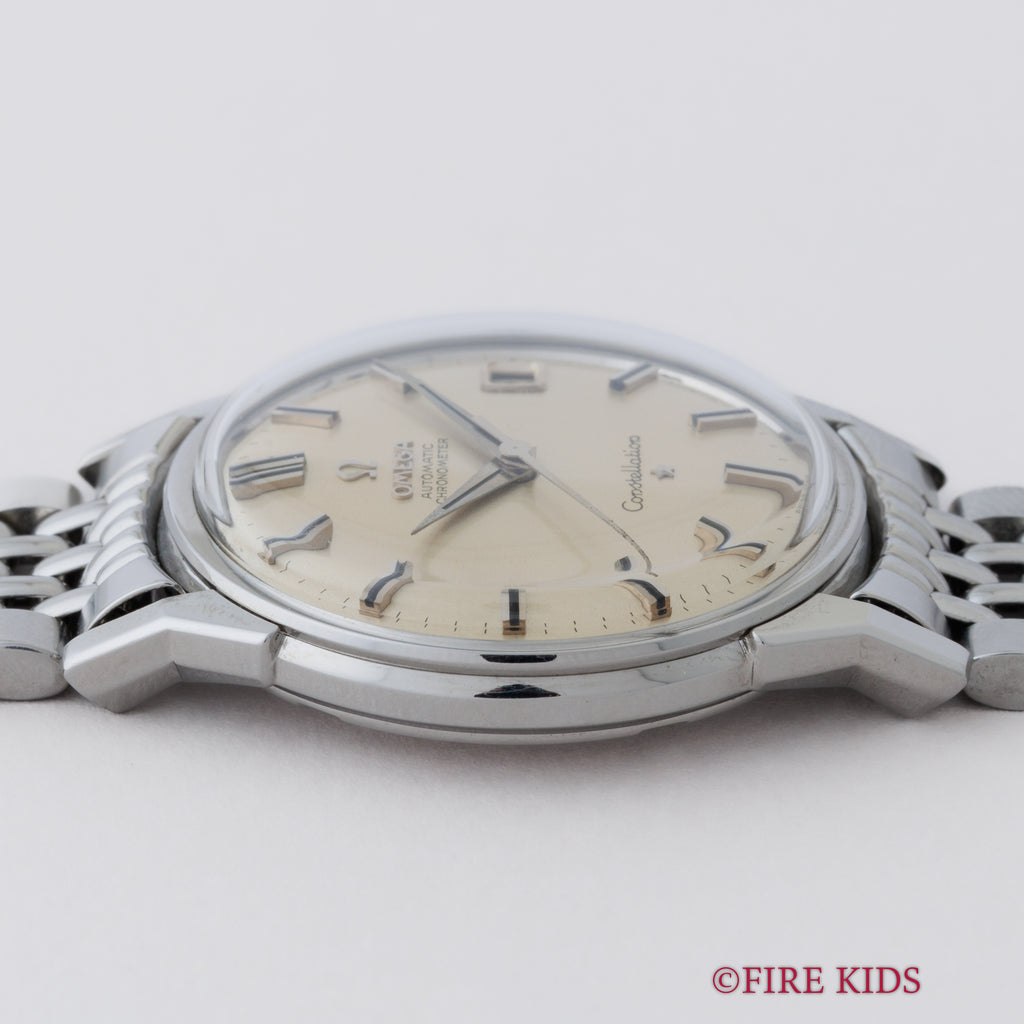 オメガ コンステレーション 1962年製 Ref.14902 61 SC 自動巻きクロノメーター 純正ブレス付の入荷になります。オメガの中でも最上級モデルであるコンステレーション。ダイヤル、ケースともに年代なりの経年や小傷はありますが大きなダメージはありません。ムーブメントは自動巻きクロノメーターのCal.561を搭載しています。手巻きや針回しはスムーズです。ベルトは純正のステンレスライスブレスが取り付けられています。