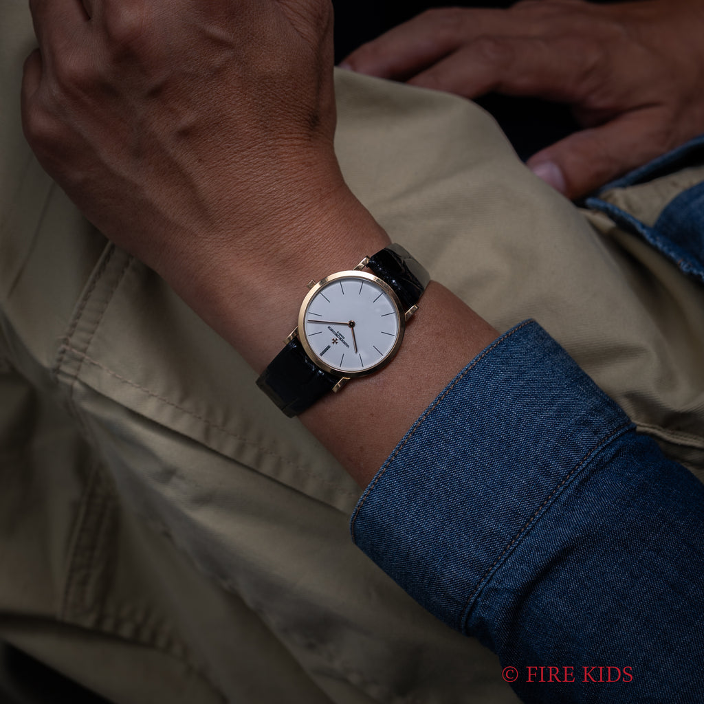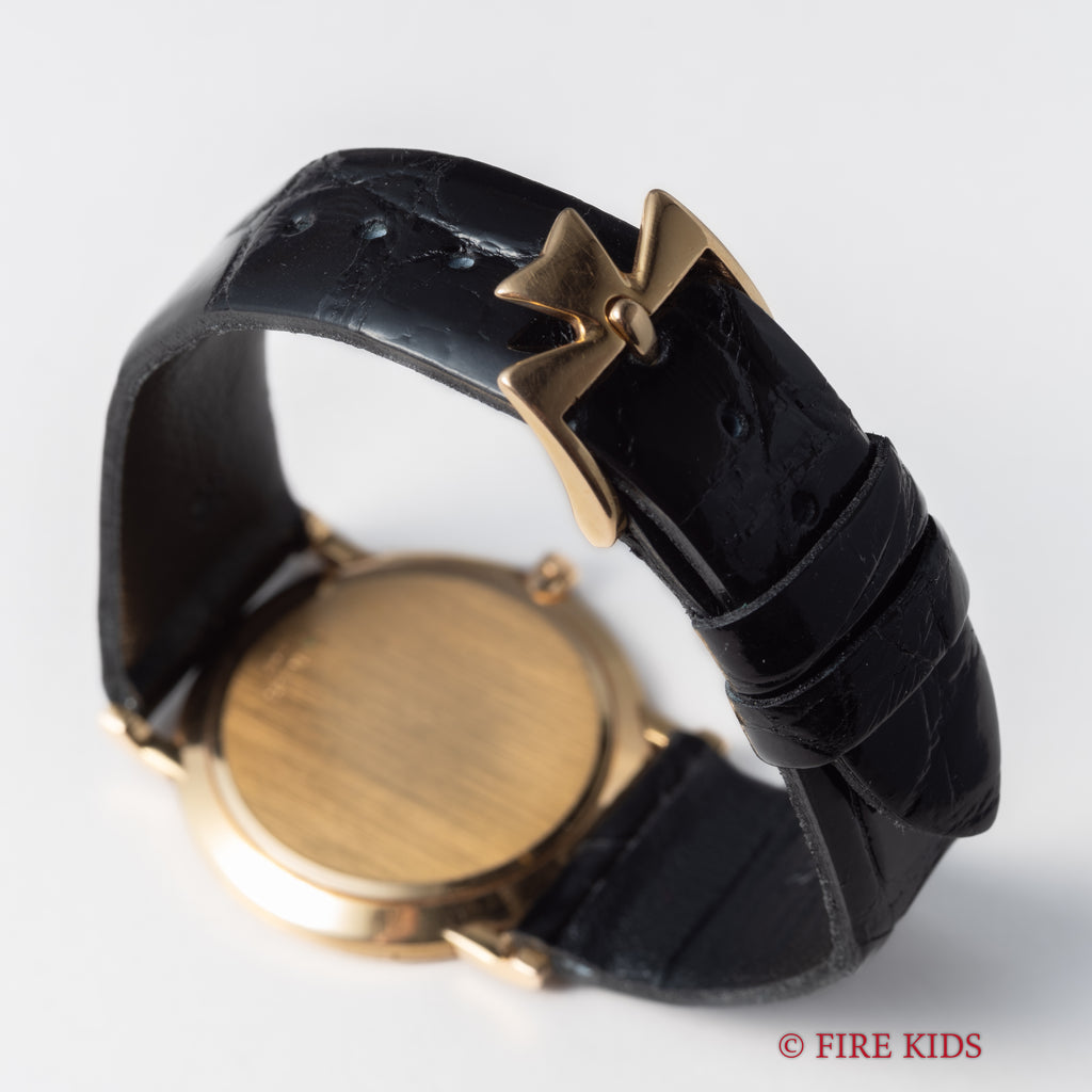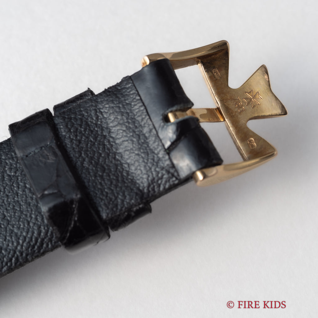 ヴァシュロン・コンスタンタン パトリモニー 1980年代製 Ref.33093 手巻 Cal.1003/2 18金無垢イエローゴールドの入荷になります。マルタ十字が光るホワイトダイヤルに二針、薄型ケースと正統派ドレスウォッチの一本です。ダイヤル、文字盤はシミ等無く綺麗です。ケースは小傷が見られますが大きなダメージはありません。機械は薄型高級機ジャガールクルトベースのCal.1003/2を搭載し、手巻きや針回しはスムーズです。ベルトは社外の革ベルトに純正の金無垢尾錠が取り付けられています