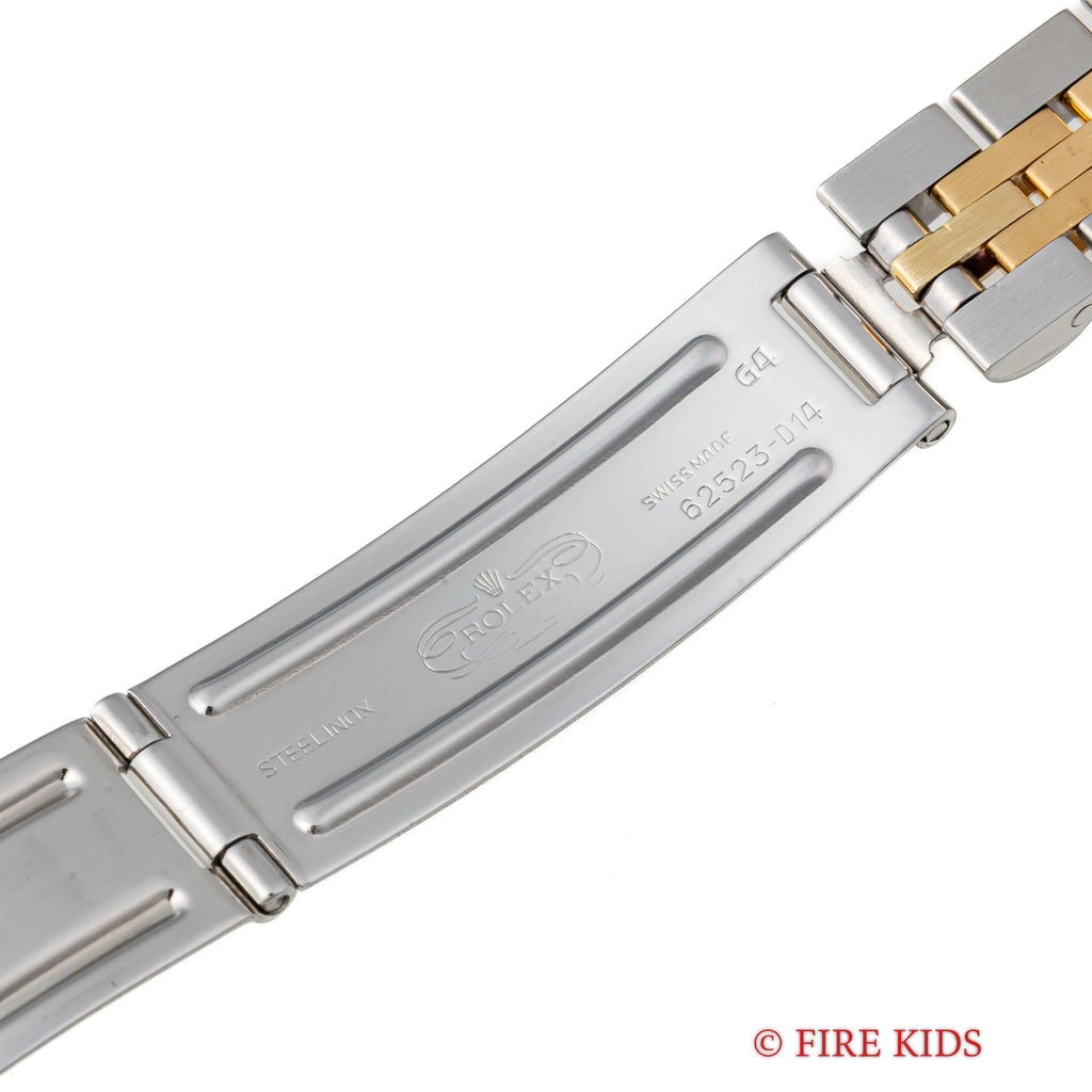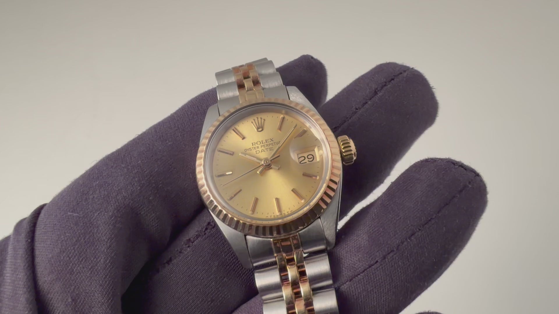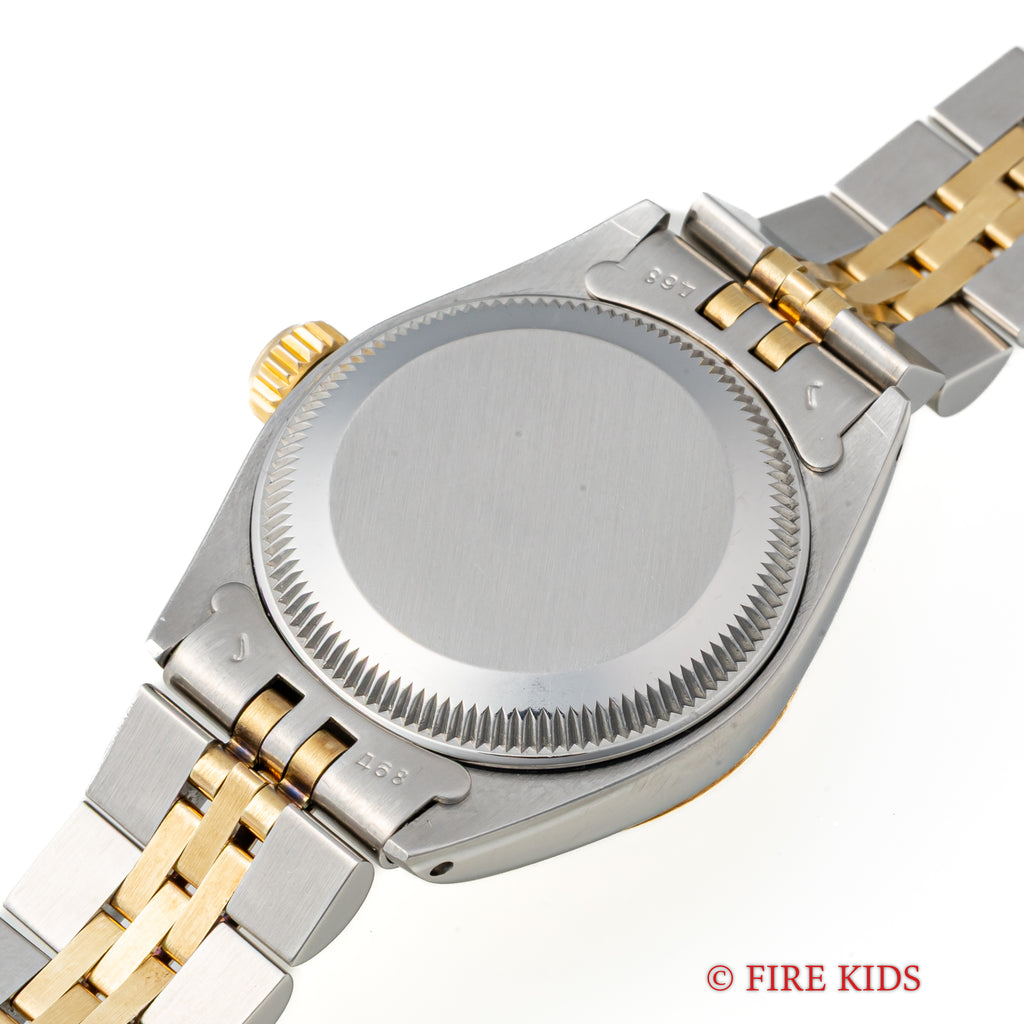 1980年製のロレックス オイスターパーペチュアルデイト レディースです。ステンレスとイエローゴールドの華やかなコンビモデルです。イエローゴールドのフル―テッドベゼルにシャンパンゴールド文字盤とバーインデックスのスタンダードな組み合わせで使いやすいモデルです。ムーブメントは自動巻きのCal.2030を搭載。手巻きや針回しの操作はスムースで、リューズのねじ込み具合も問題ありません。ベルトは純正巻きジュビリーブレスが装着されています。こちらは分解掃除済みになります。
