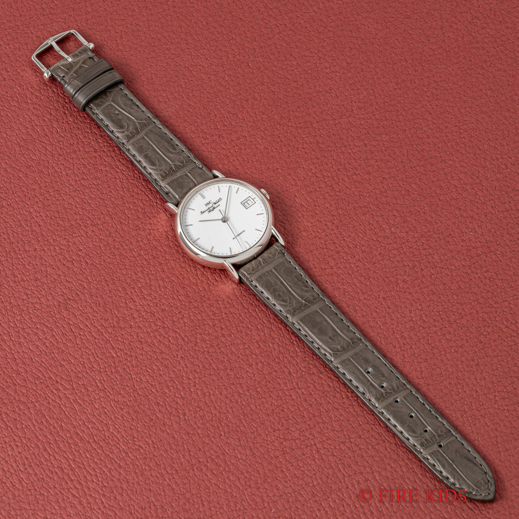 1994年製のIWC ポートフィノが入荷しました。艶やかなエナメル文字盤が上品な印象のモデルです。IWC表記と筆記体でインターナショナルウォッチカンパニー表記の入る人気仕様です。艶やかなホワイトダイヤルはダメージを感じない良好なコンディションで、ケースも小傷はありますが大きなダメージはありません。リューズはお魚です。手巻きや針回しはスムーズです。メンテナンス性も良くおススメのモデルです。ベルトはファイアーキッズオリジナルクロコダイルの革ベルトに純正尾錠を合わせています。
