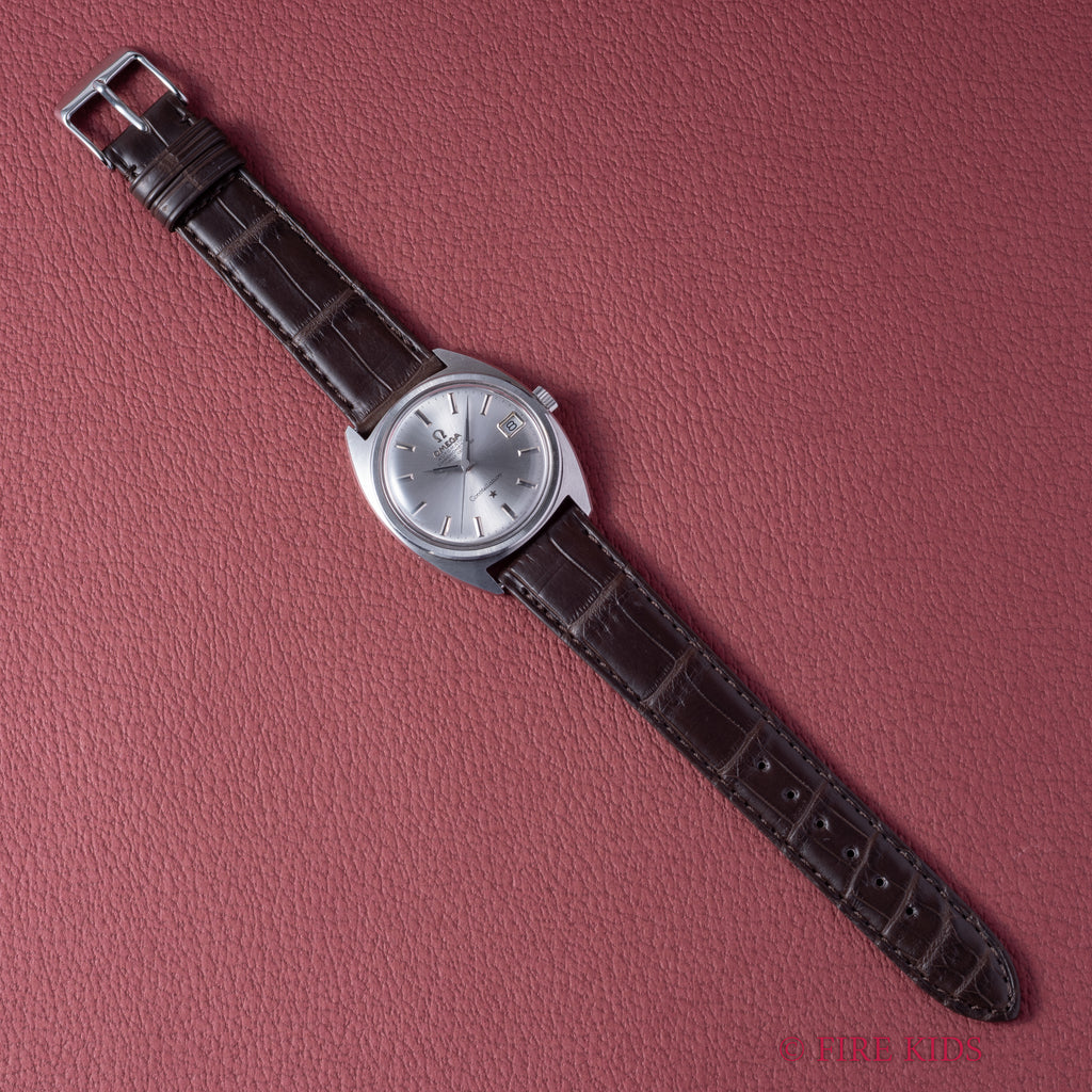 オメガ コンステレーション ジェンタ前期型 ドーフィンハンド1968年製 Ref.168.017 自動巻クロノメーター Cal.564の入荷になります。ジェラルド・ジェンタデザインのコンステレーションでも前期型モデルで、ドーフィンハンドになっています。文字盤はシミ等無く綺麗です。ケースは小傷が見られますが大きなダメージはありません。手巻きや針回しの操作はスムースです。ベルトはファイアーキッズオリジナルのクロコダイル革ベルトが取り付けられています。こちらは分解掃除済みです。