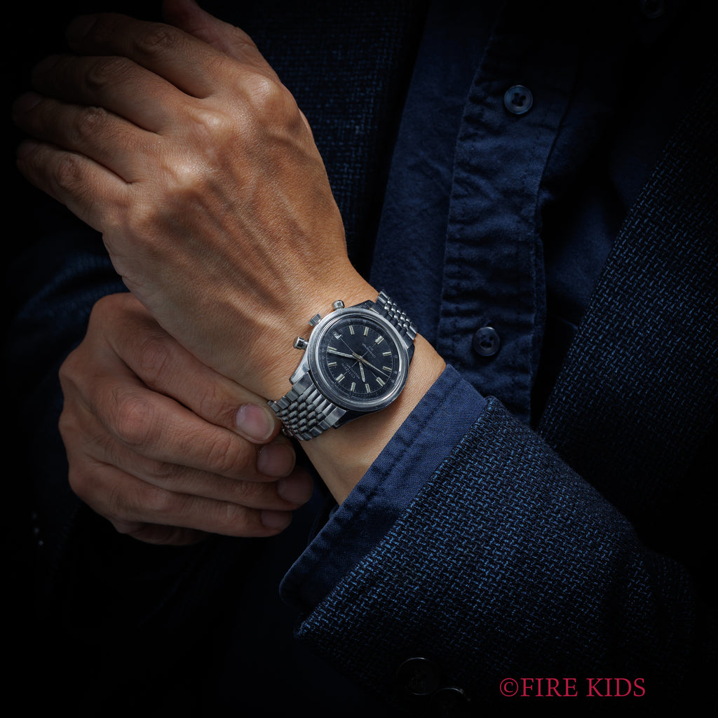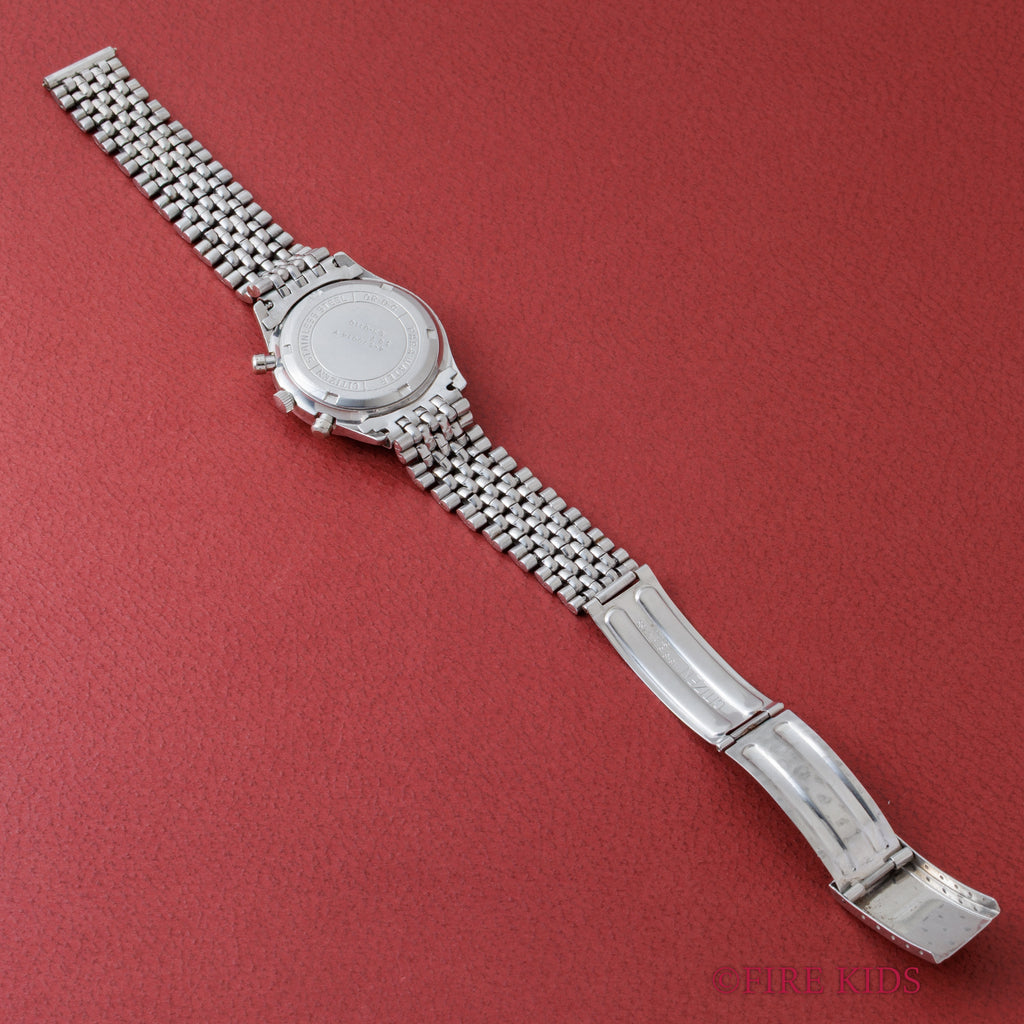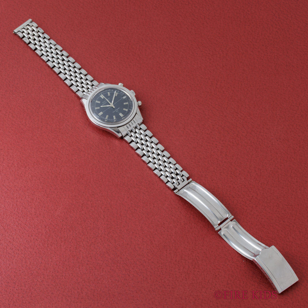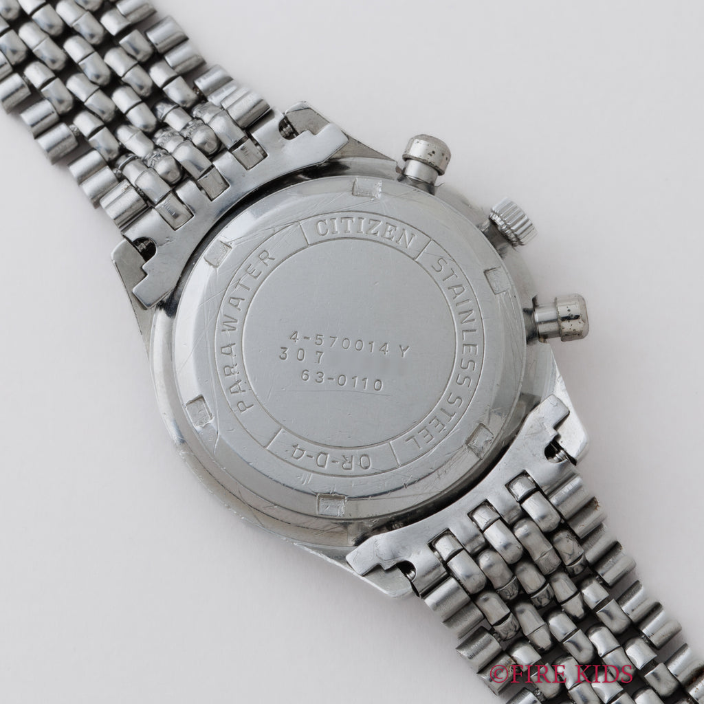 1973年製のシチズンレコードマスターです。フライバック機能搭載のクロノグラフで製造期間も僅か5年というレアなモデルです。ムーブメントは手巻き21石のCal.5702を搭載。手巻きや針回し、クロノグラフの操作はスムースです。ベルトは純正のステンレスブレスが取り付けられています。